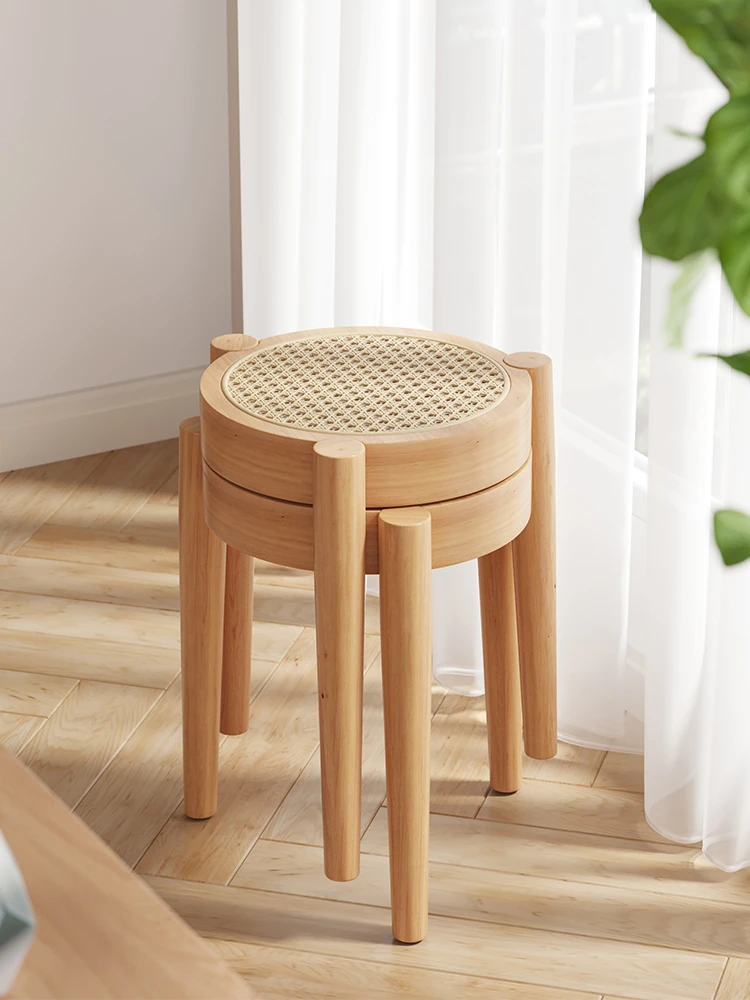 天然木製と籐編みのダイニングチェア|家庭用食卓に最適|スタッキング可能なリビングチェア|厚みのあるラウンドスツール|予備のハイチェアにも最適!快適な食事時間を提供します。