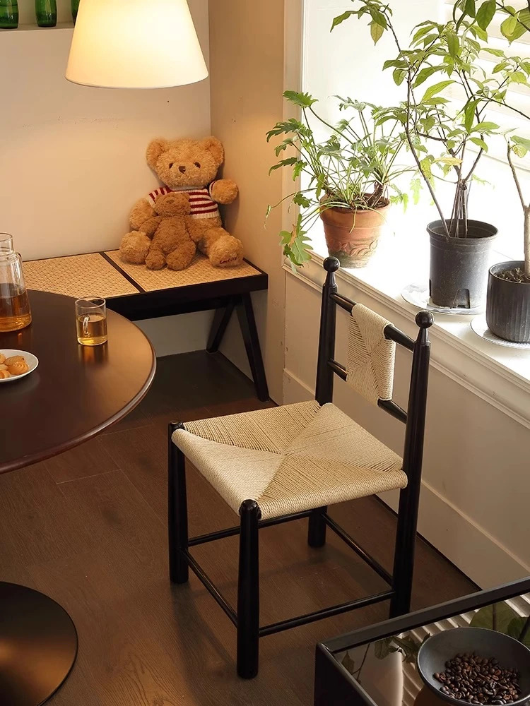 レトロなラタン編みのダイニングチェア|アイアンフレーム|軽やかで高級感漂うデザイン|背もたれ付き|侘寂美を楽しむ|リビングやダイニングにぴったりのスタイリッシュな座椅子