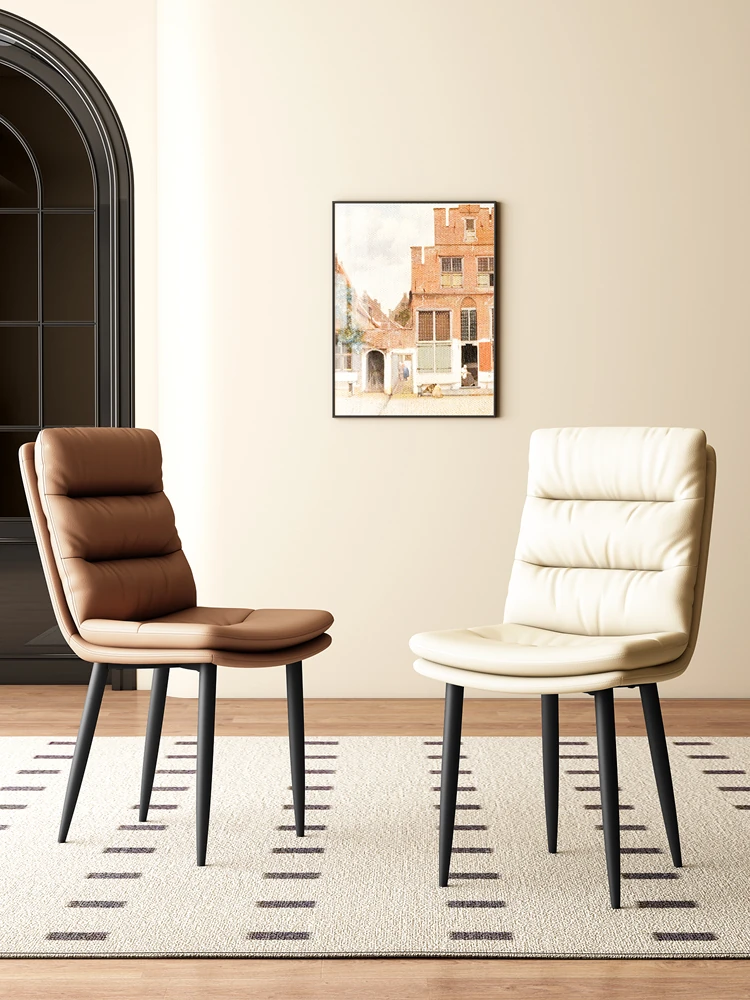 イタリアンミニマリストデザインのサドルレザー製ダイニングチェア|高級感あふれるリラックスした背もたれ|家庭用・レストラン向け|スタイリッシュなテーブルセットに最適!