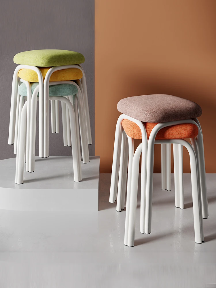 スタイリッシュな家庭用スタッキングソフトパッドスクエアスツール - モダンでシンプル、レストランやカフェに最適なダイニングチェア!高い座面で、便利なサブテーブルとしても活躍します。