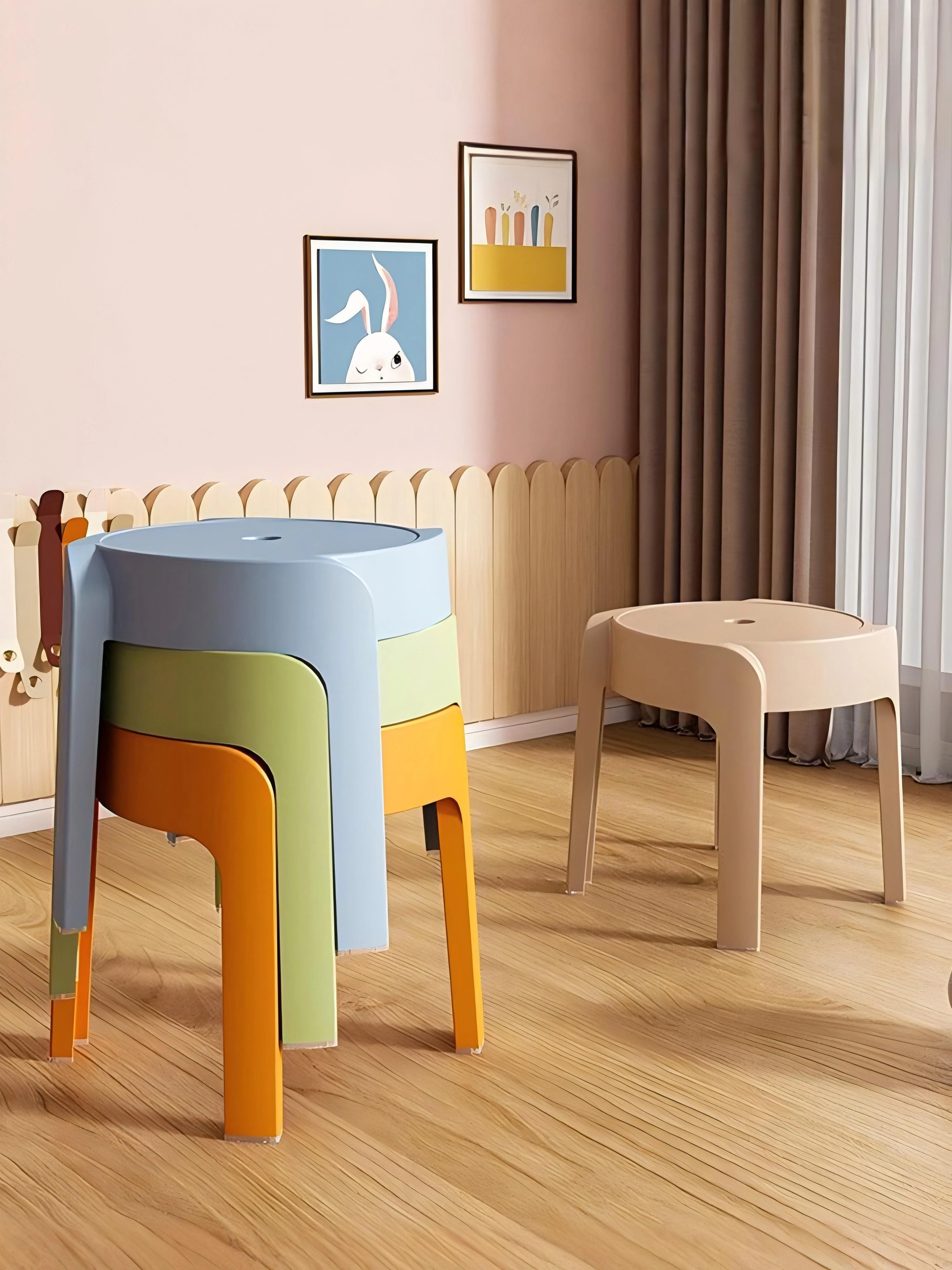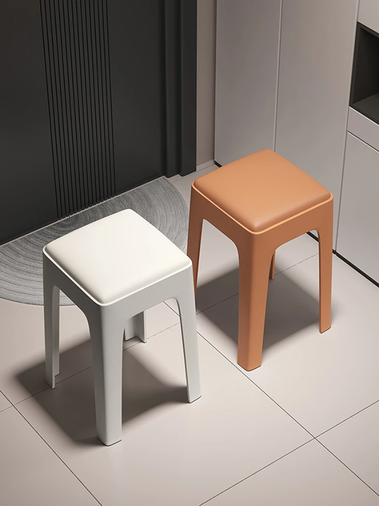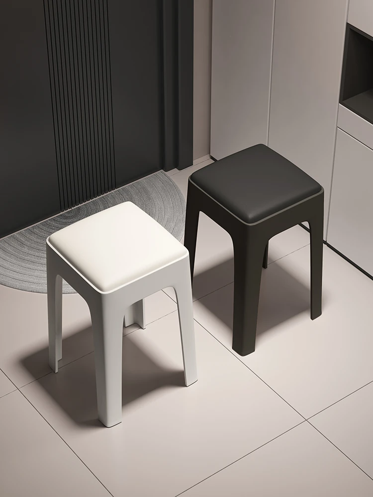 現代的でシンプルなデザインの厚手プラスチックスツール|家用・リビング・ダイニングに最適|積み重ね可能でゴージャスなクッション付きの補助スツール|実用性とスタイルを両立した一品!