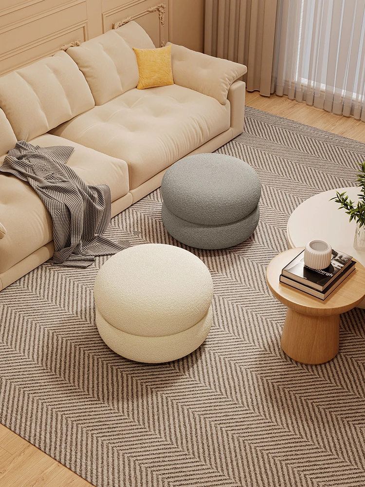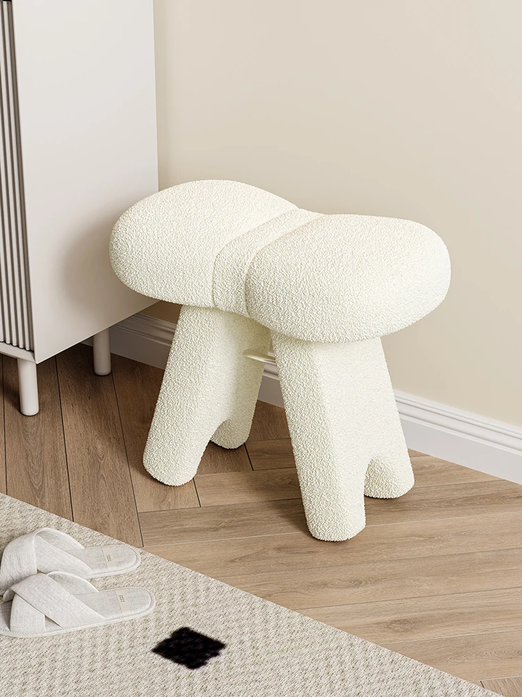 クリーム風の家庭用ラムフェルト入りのかわいい玄関用スツール - 温かみのあるデザインで、おしゃれな玄関を演出!座り心地抜群で、訪問客を喜ばせるアイテムです。