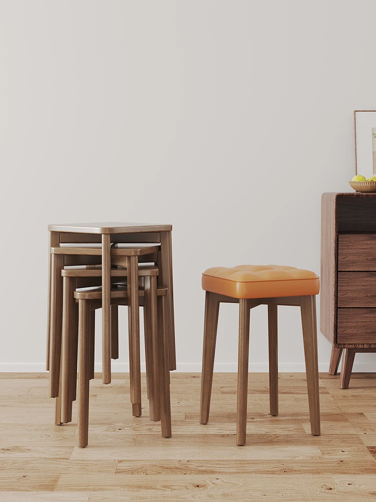 リビングに最適なスタッカブル木製スツール!コンパクトでモダンなデザイン、ダイニングや家庭用にピッタリ。スペースを有効活用できる、おしゃれで実用的な小さな椅子です!
