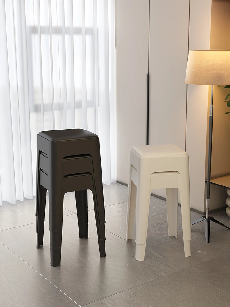 スタイリッシュで実用的!家庭用スタッキング高椅子 - モダンデザインのシンプルなダイニングスツール。厚手プラスチック製、食事に最適な四角いスツールで、スペースを有効活用できます!