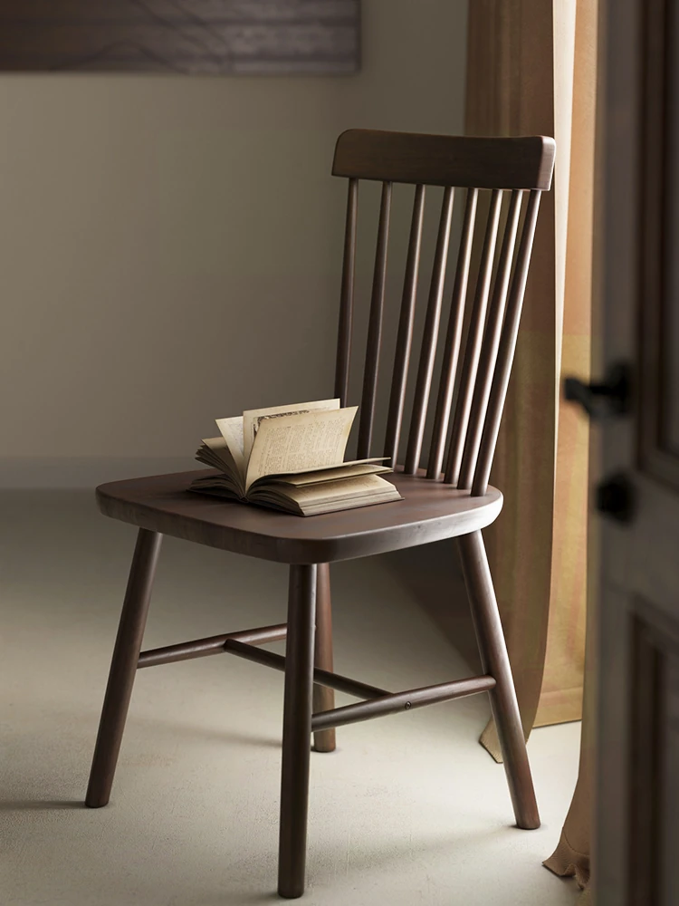 Vintage Solid Wood Walnut Dining Chair, Stylish Home Tea Chair, Retro Wooden Coffee Windsor Chair with Backrest, Perfect for Tea Tables and Cozy Dining Spaces.