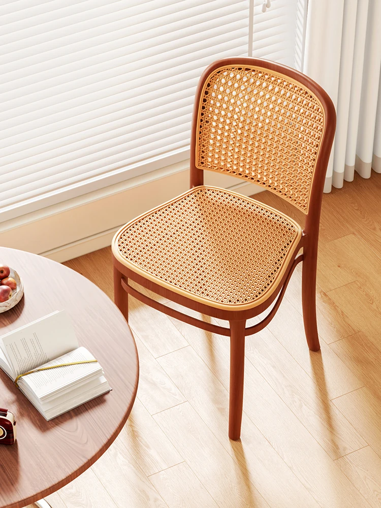 Vintage Rattan Dining Chair - Elegant Iron Accent Seat for Home Use, Boho-Style High-Quality Stool with Backrest, Perfect for Living Room and Dining Table.