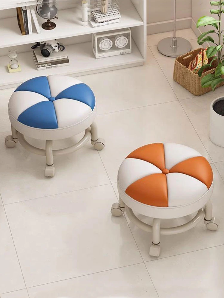 Durable Swivel Stool with Backrest - Creative Rolling Chair for Living Room, Versatile Small Bench for Home Use, Perfect for Comfortable Seating and Easy Mobility