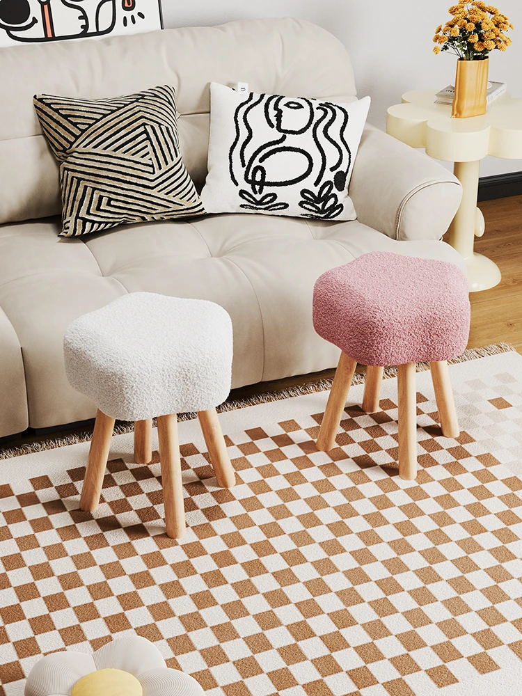 Modern Minimalist Round Stool for Home Use - Cloud-Shape Solid Wood Makeup Vanity Stool, Perfect for Living Room & Sofa, Trendy and Stylish