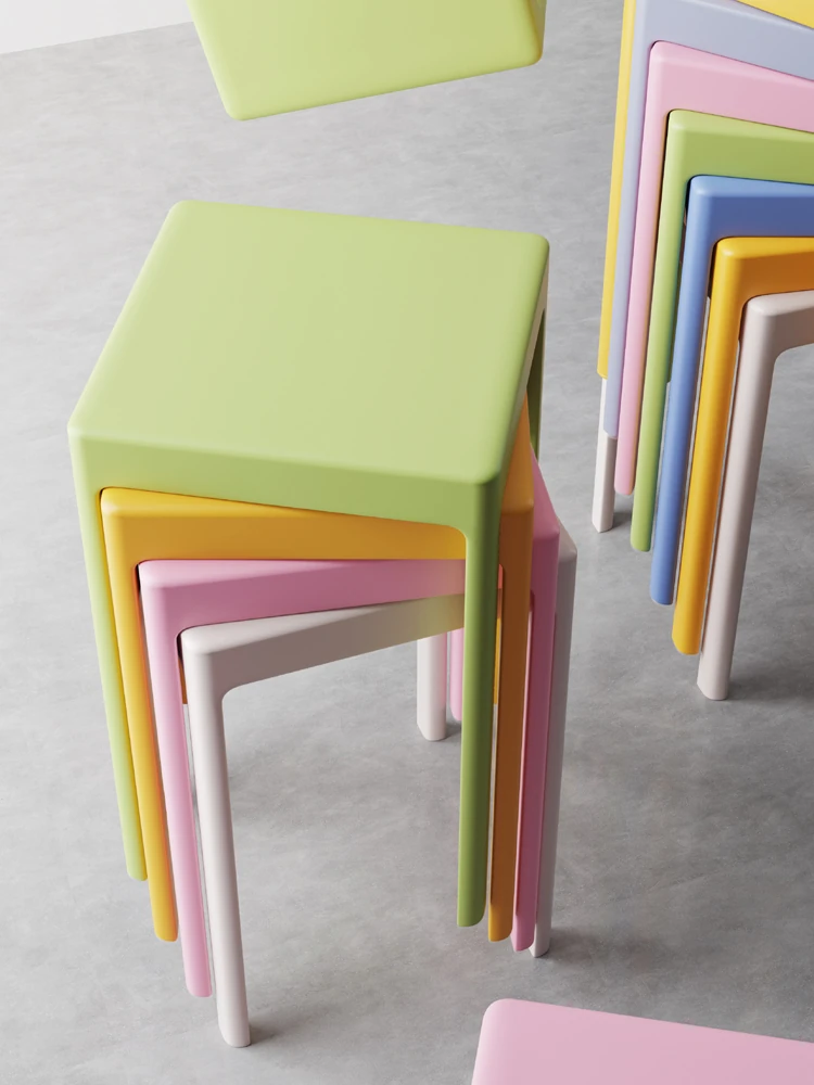 Modern Thickened Plastic Stools - Stackable Dining Chairs with Soft Cushions for Home or Guest Use - Simple and Stylish Square Design