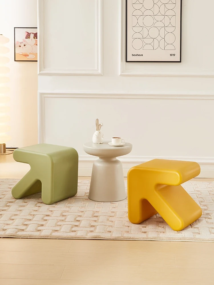 Creative Plastic Stool for Home Use - Trendy Arrow Design Small Bench for Living Room, Kids' Sitting, and Shoe Changing at Entrance