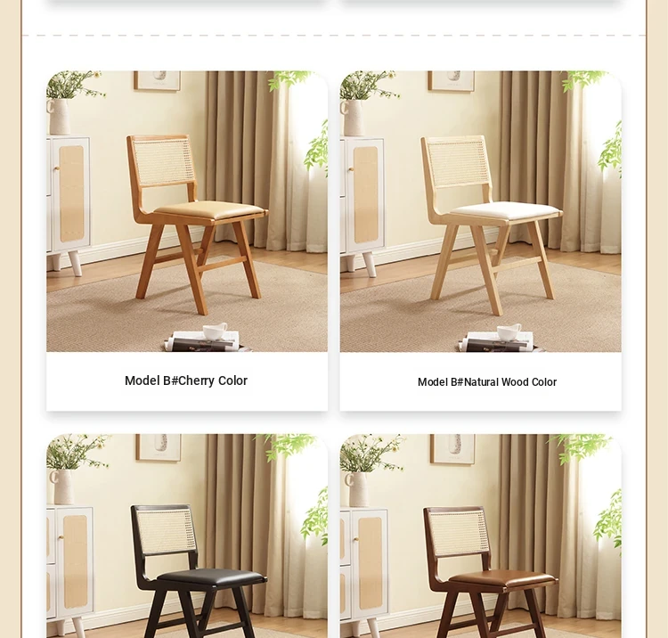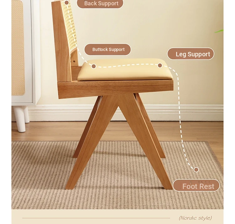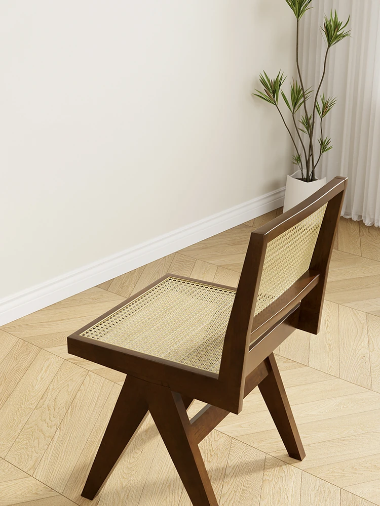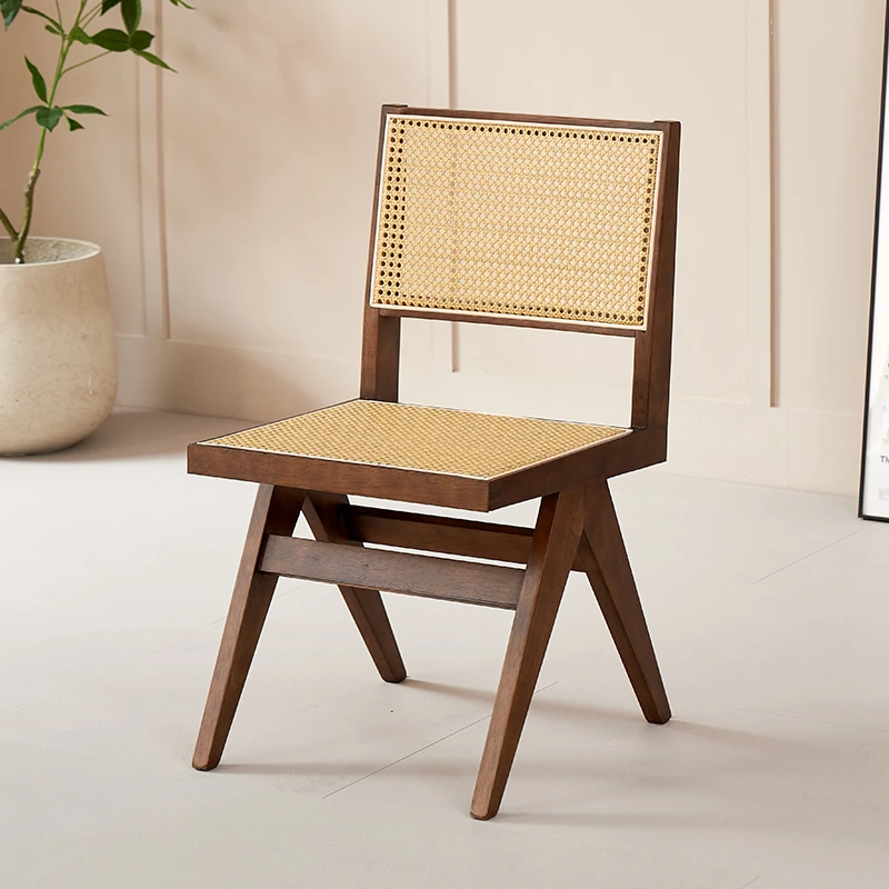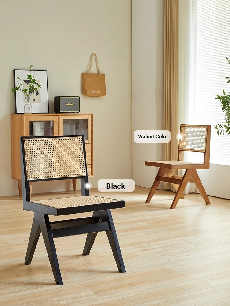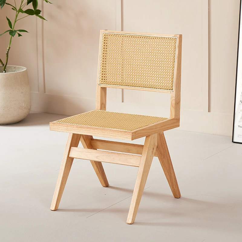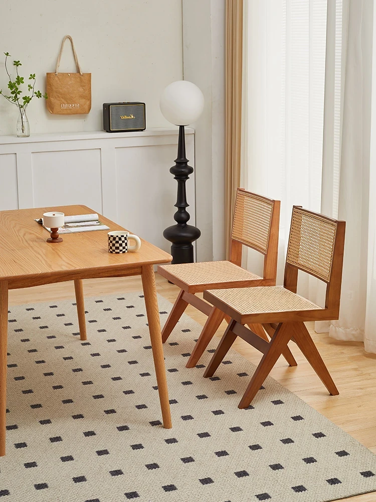 Scandinavian Solid Wood Dining Chair - Vintage Rattan Woven Armchair-Free Stool with Backrest, Perfect for Home Use with Chandigarh Dining Table.