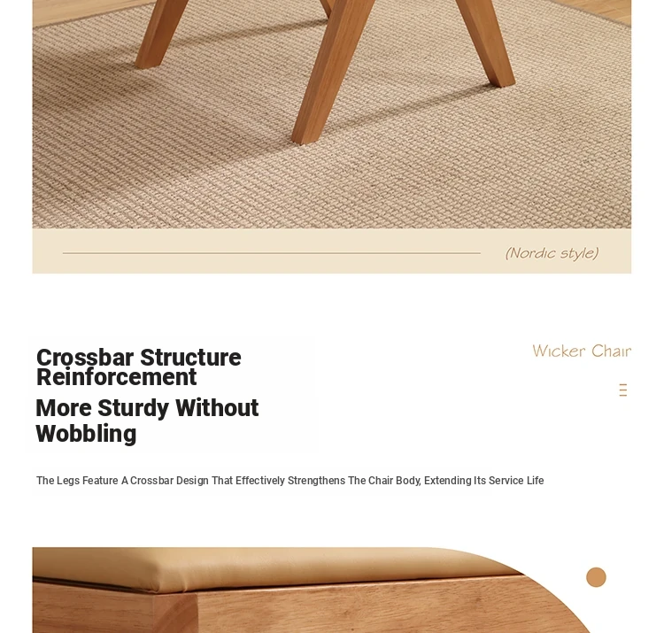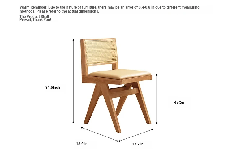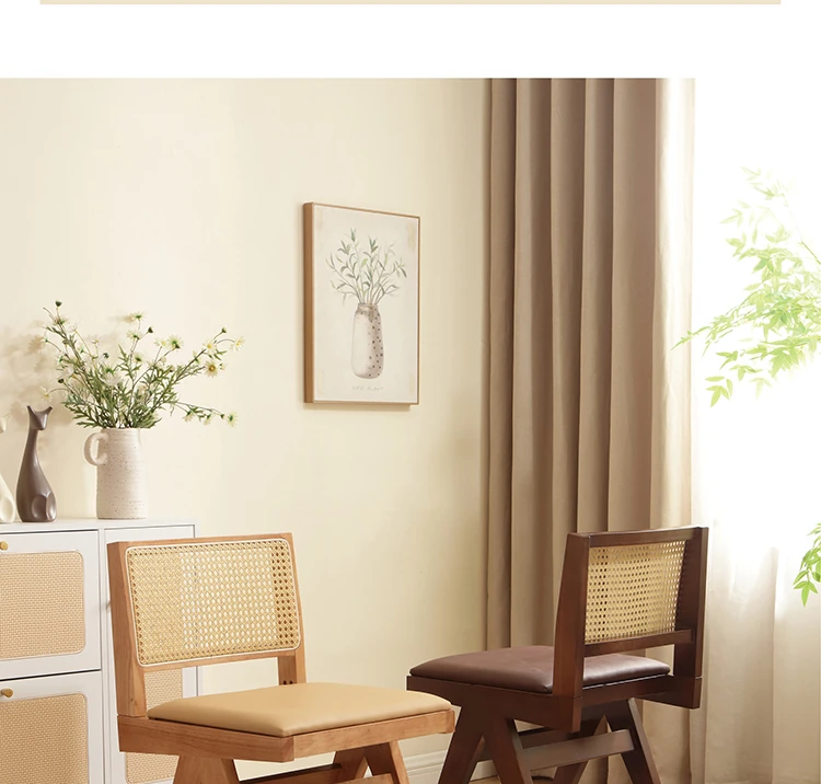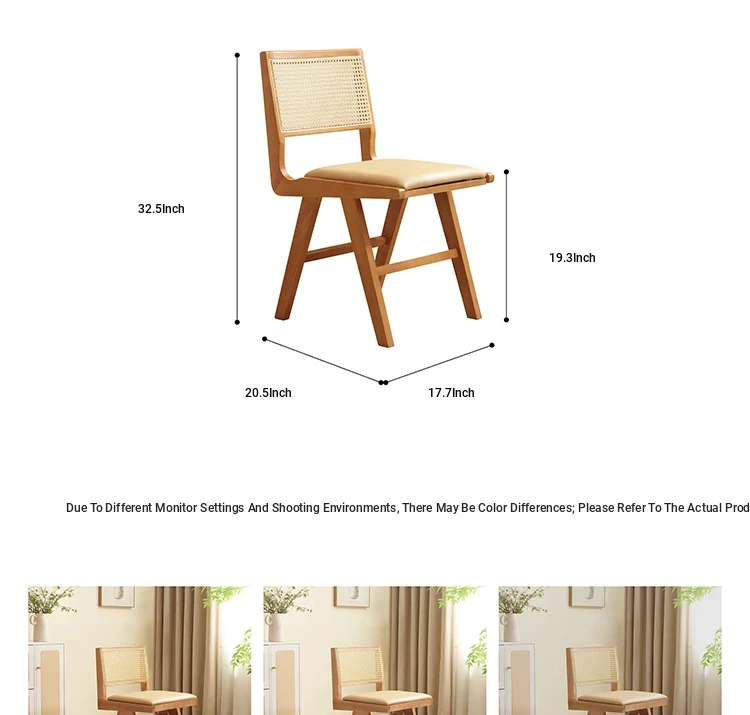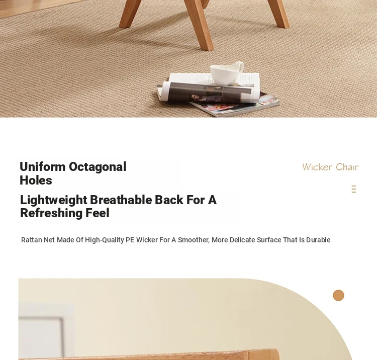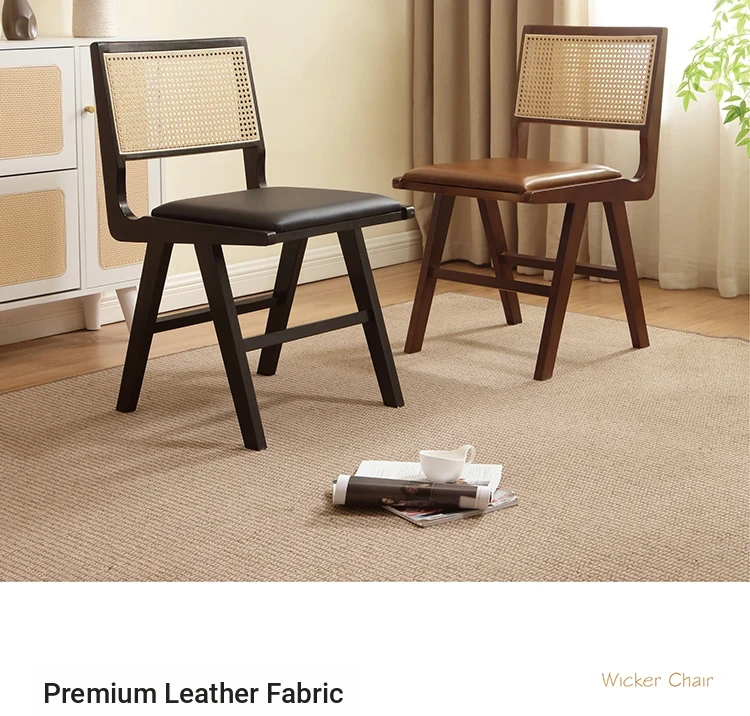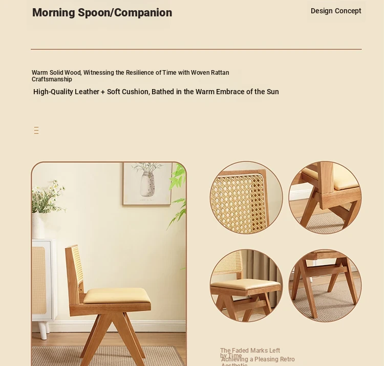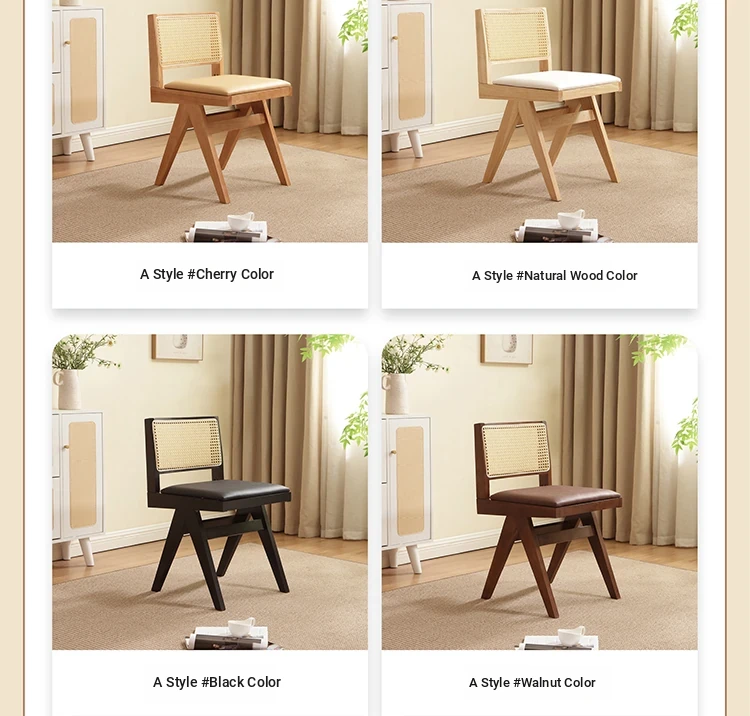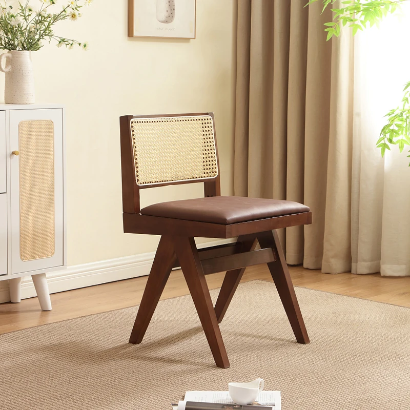 Scandinavian Solid Wood Dining Chair - Vintage Rattan Woven Armchair-Free Stool with Backrest, Perfect for Home Use with Chandigarh Dining Table.