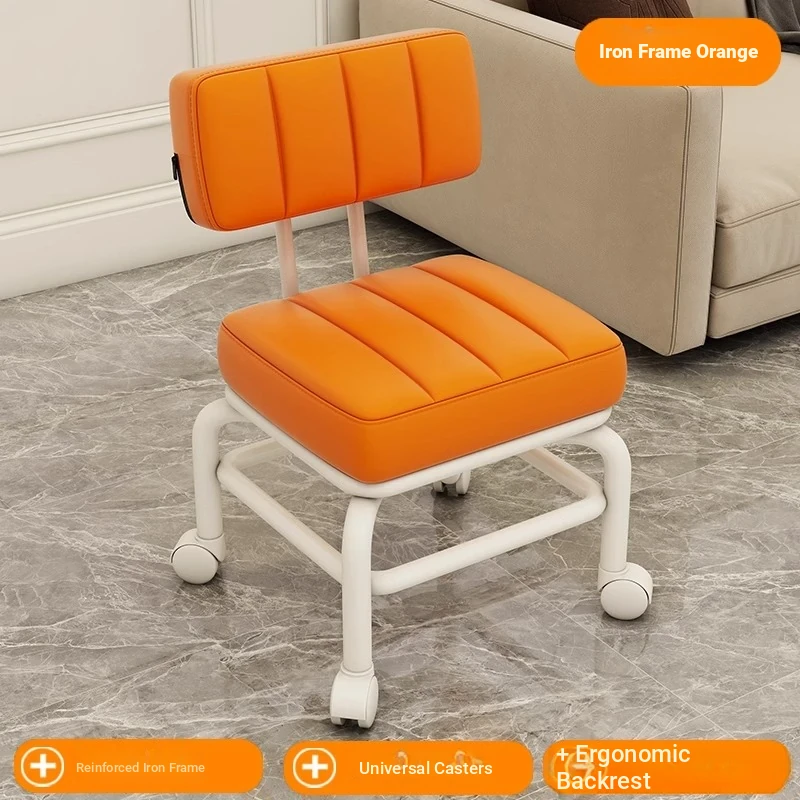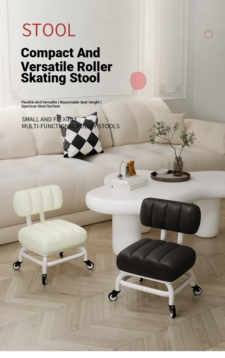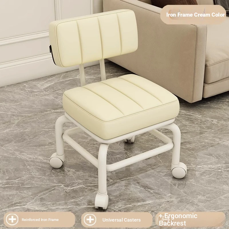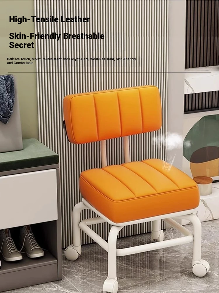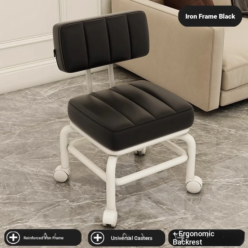 Silent Casters Swivel Stool with Backrest – Perfect for Home, Living Room & Children's Play Area – Easy to Move Footrest and Tea Table Seat for Convenient Shoe Changing – Stylish & Functional, Ideal for Every Family!