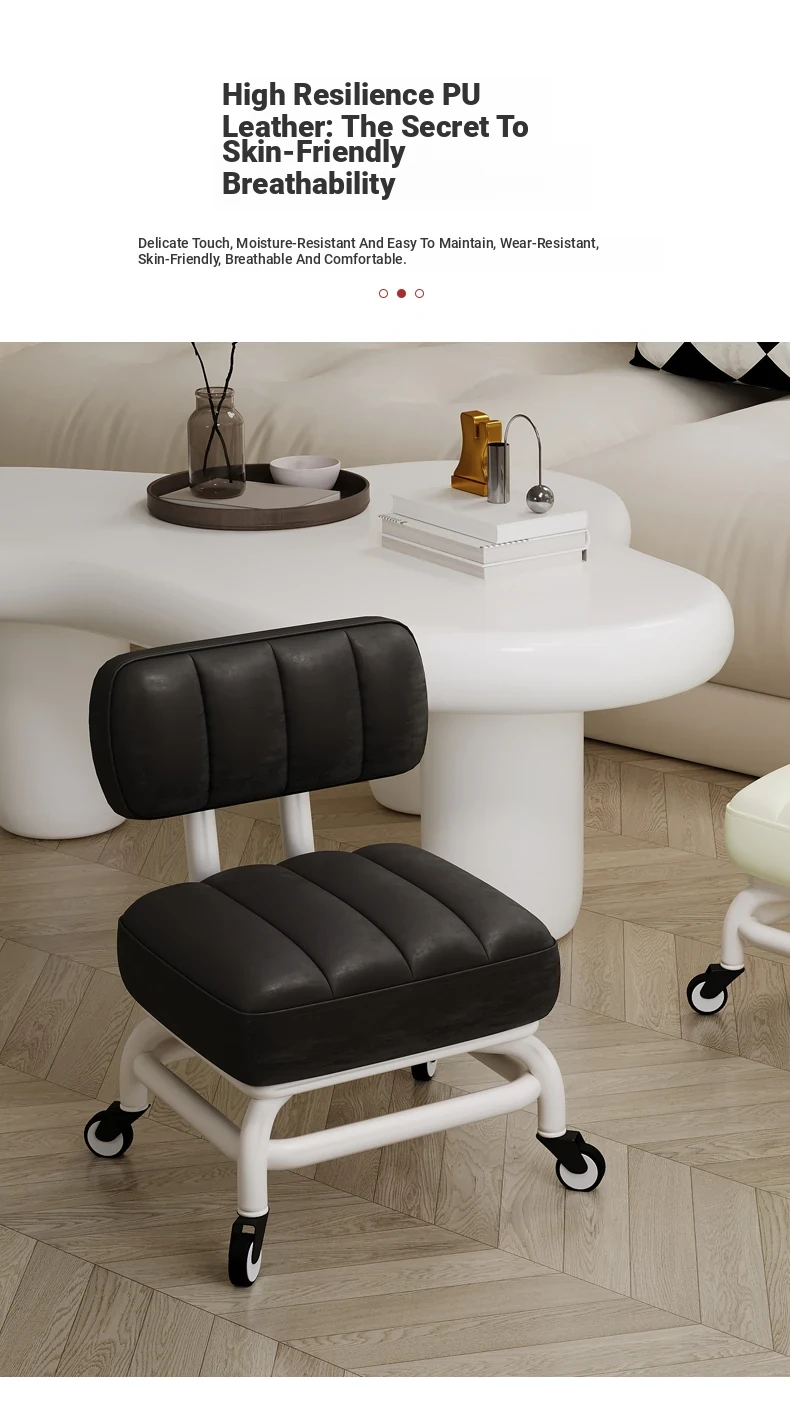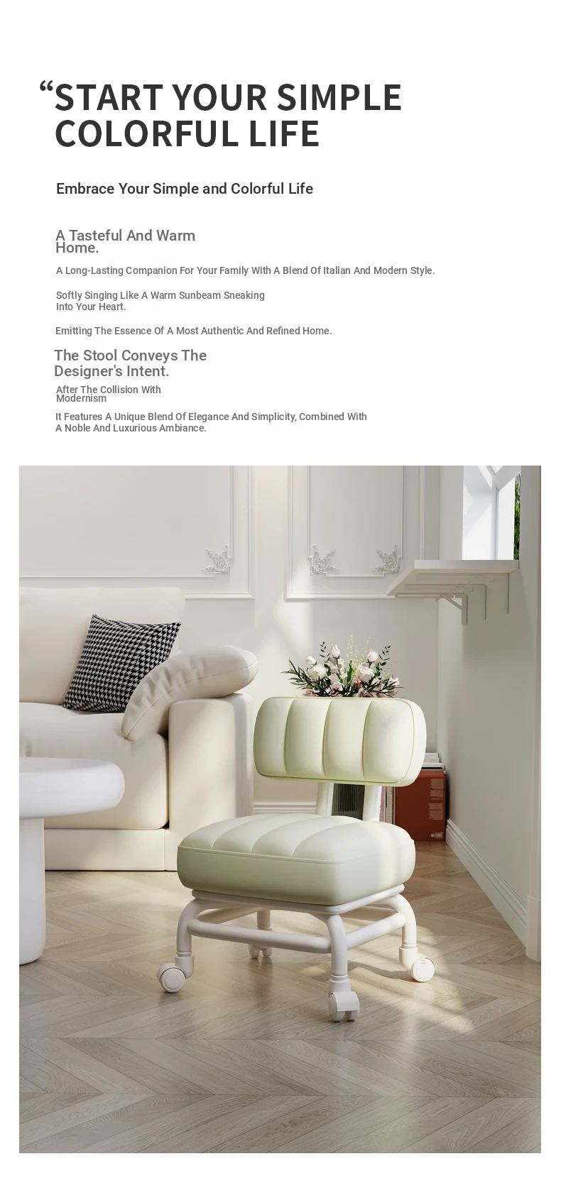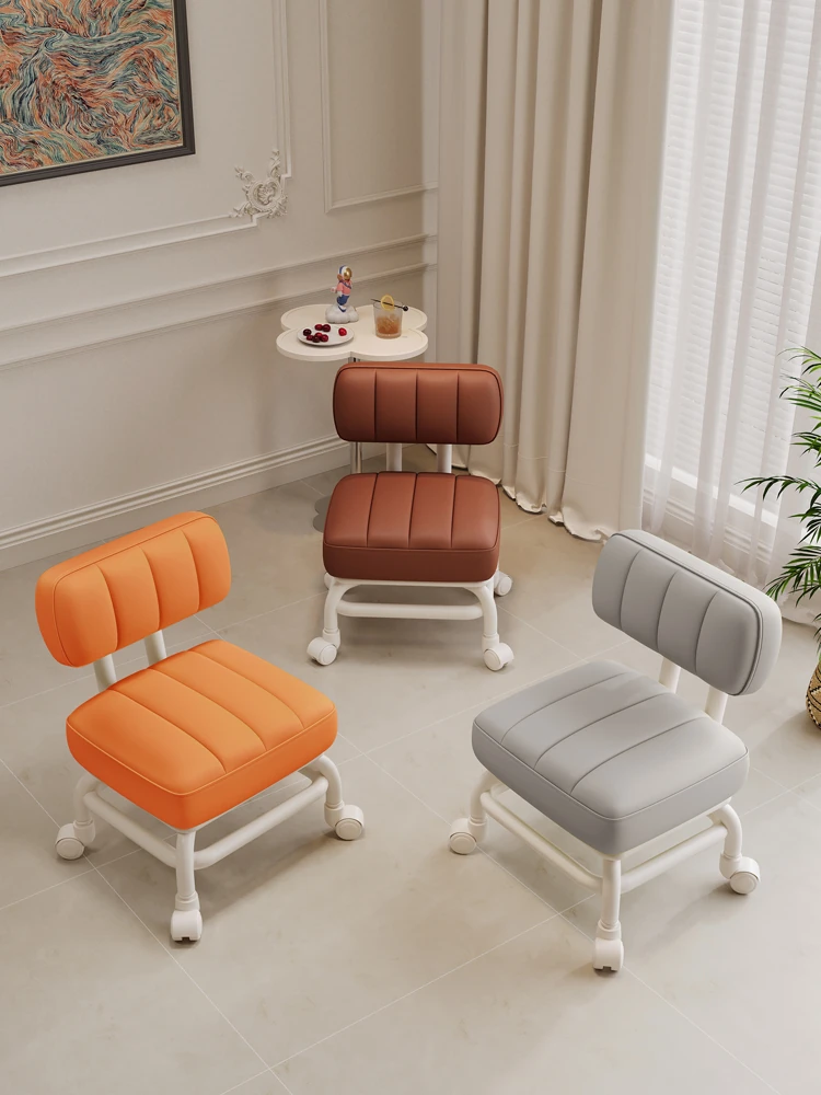 Silent Casters Swivel Stool with Backrest – Perfect for Home, Living Room & Children's Play Area – Easy to Move Footrest and Tea Table Seat for Convenient Shoe Changing – Stylish & Functional, Ideal for Every Family!