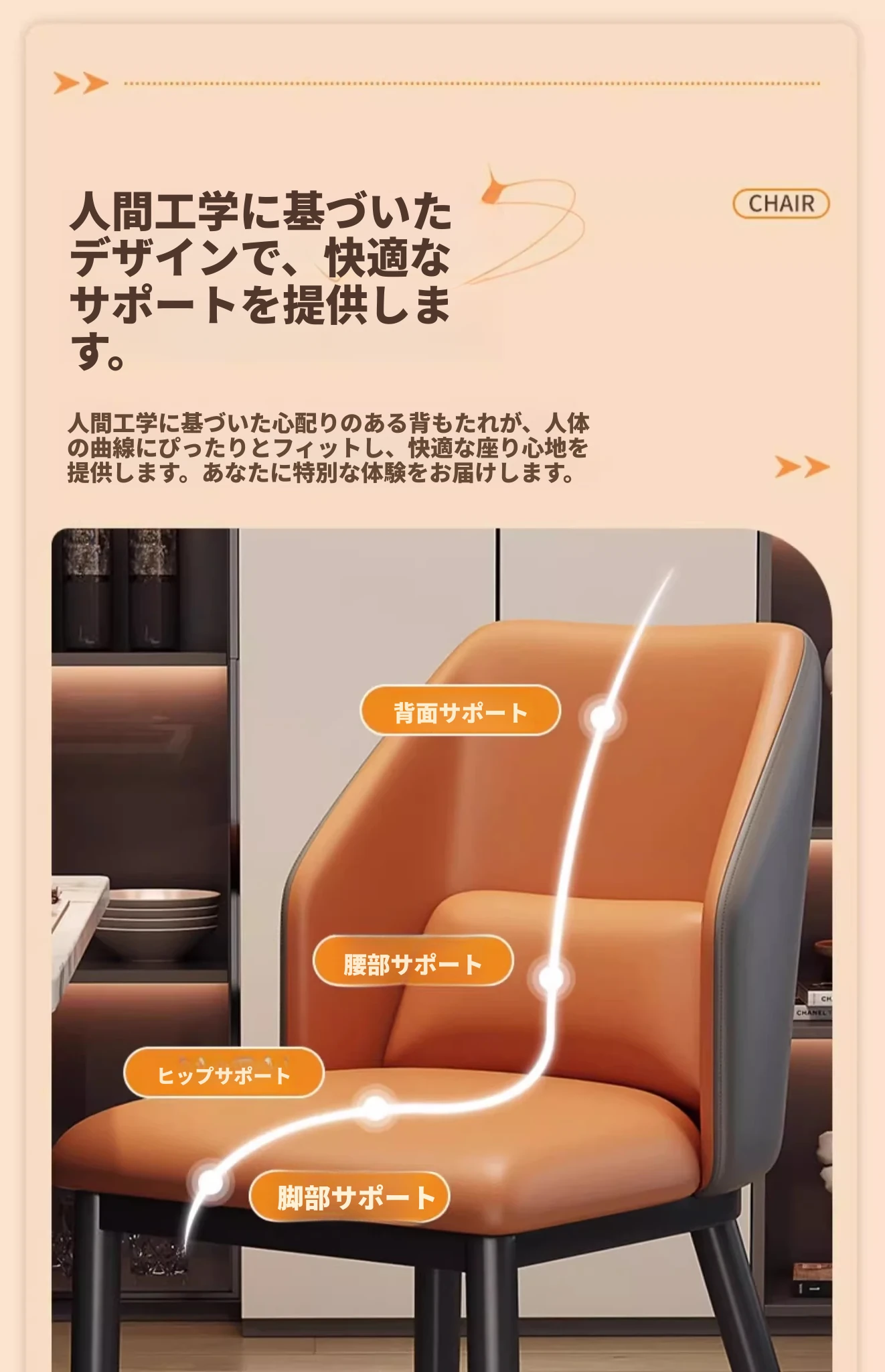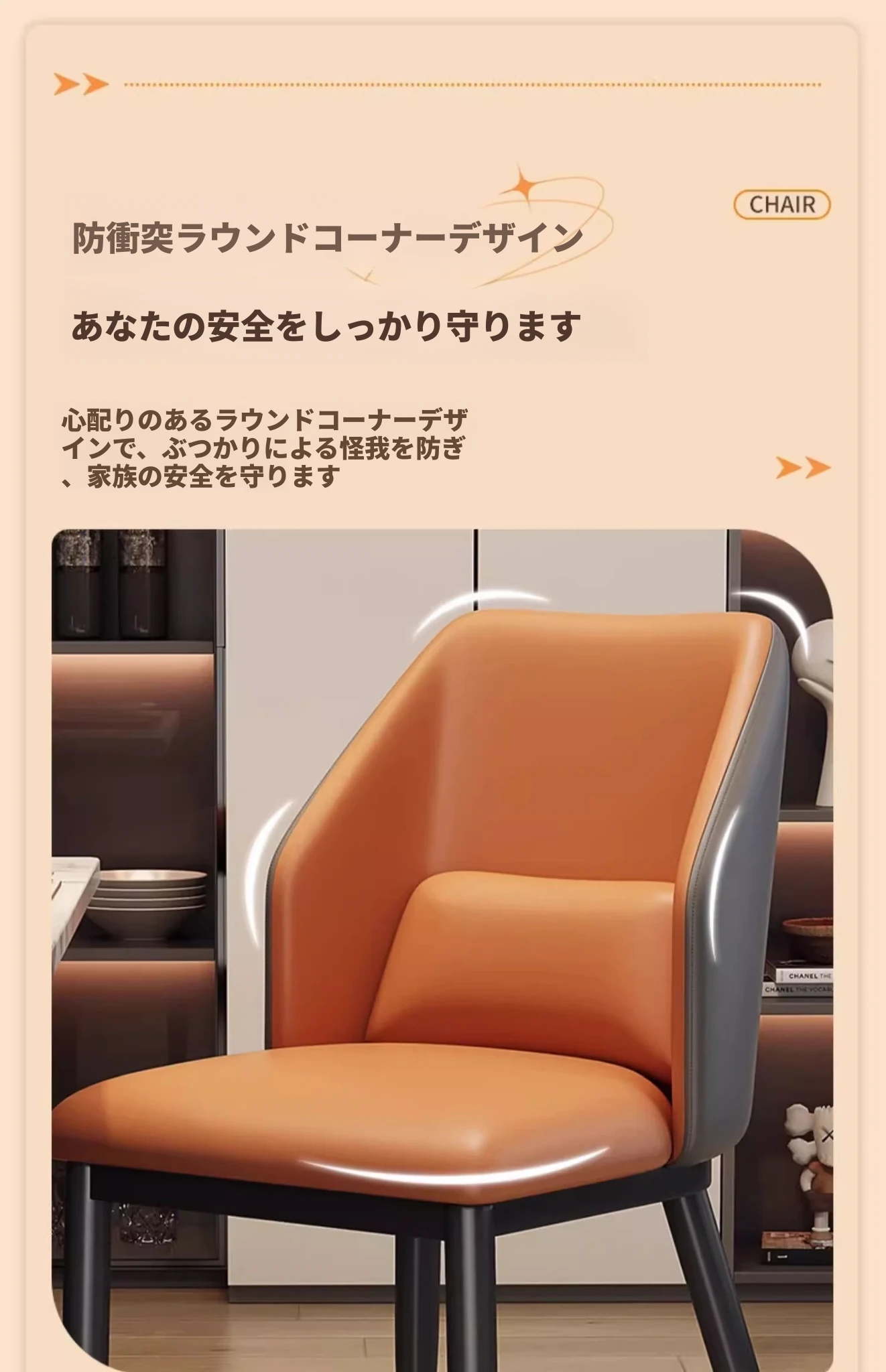 枫葉オレンジ【防汚耐磨パンナ皮-太口強化カーボンスチール椅子脚】
