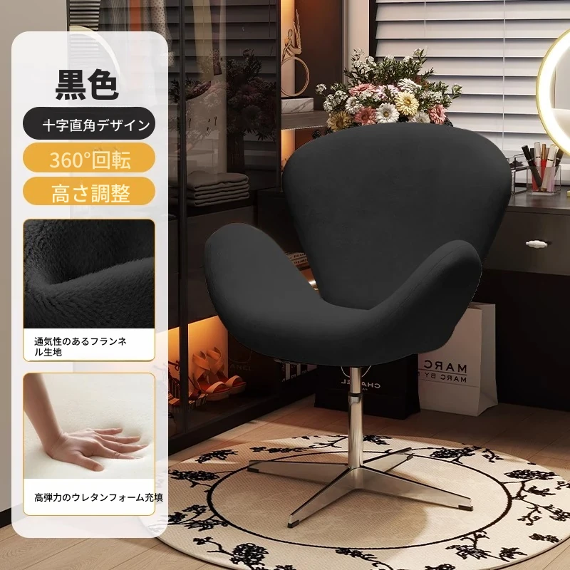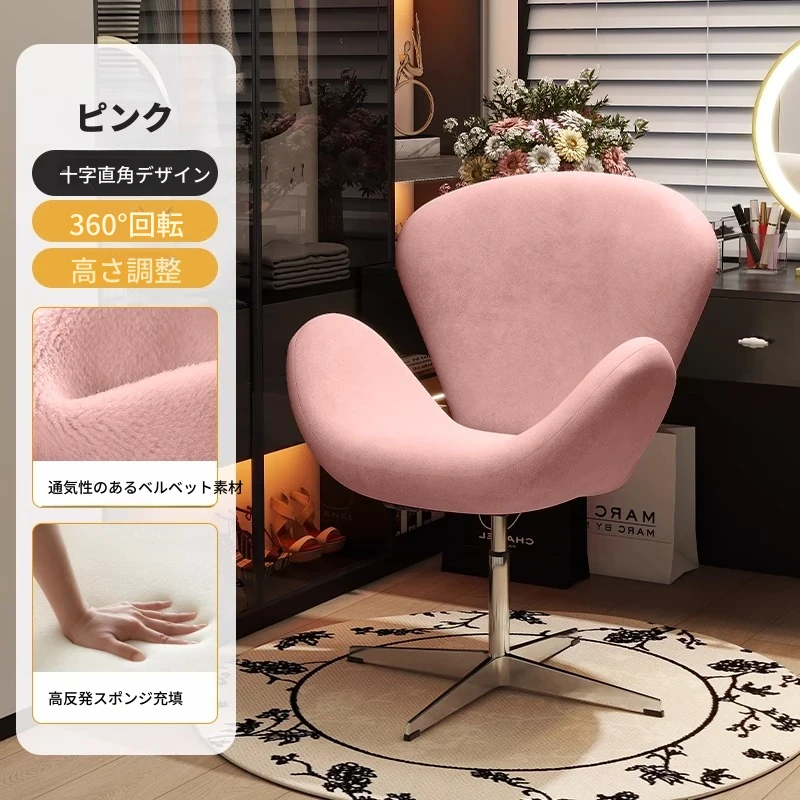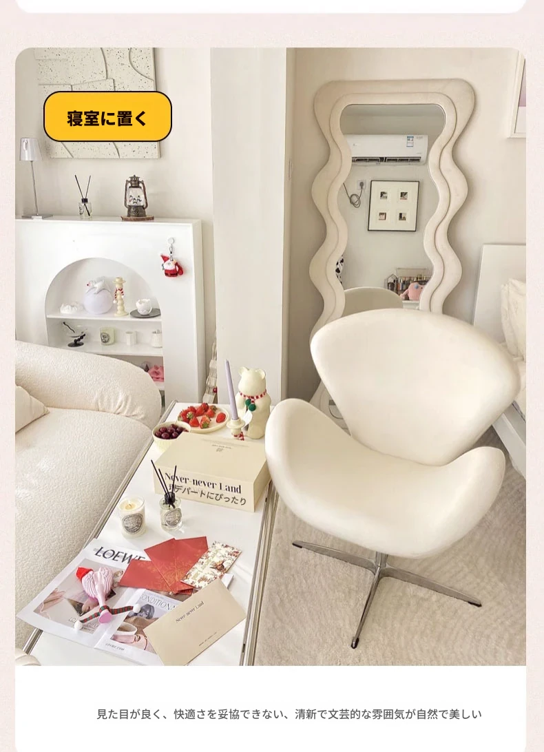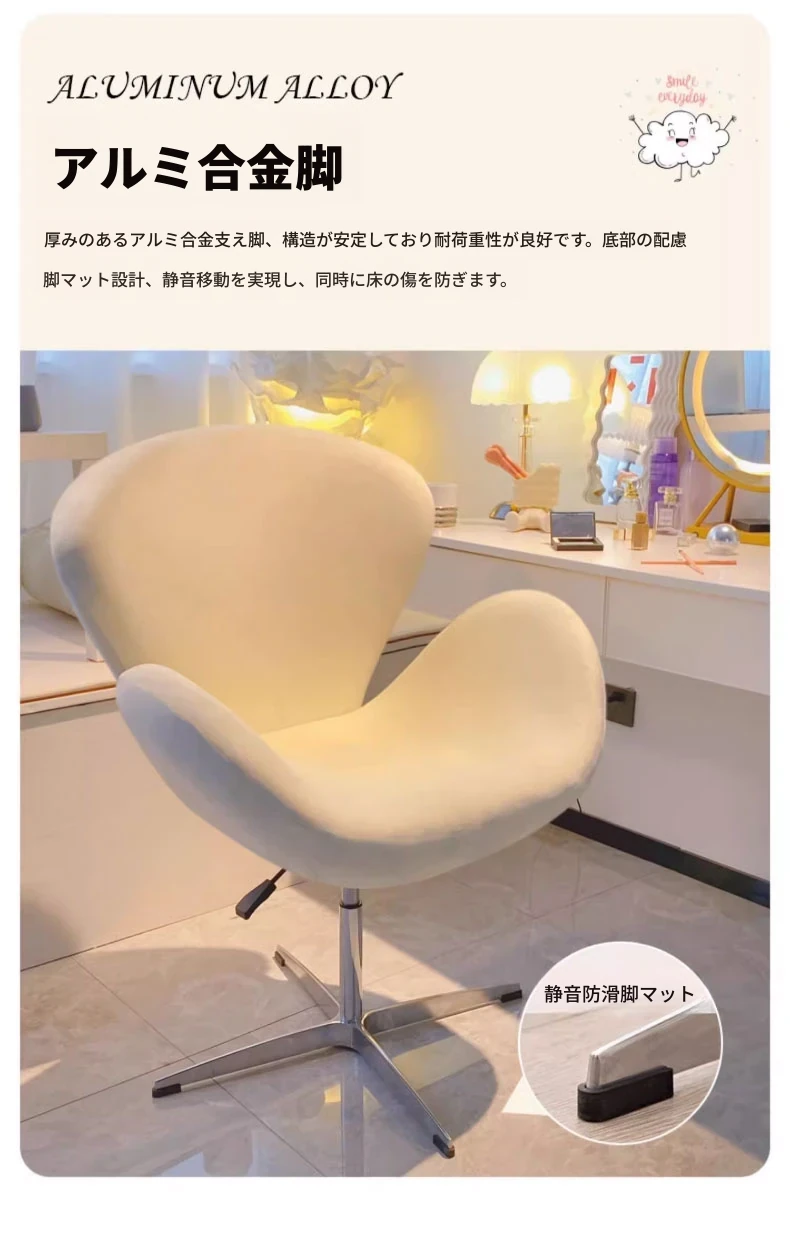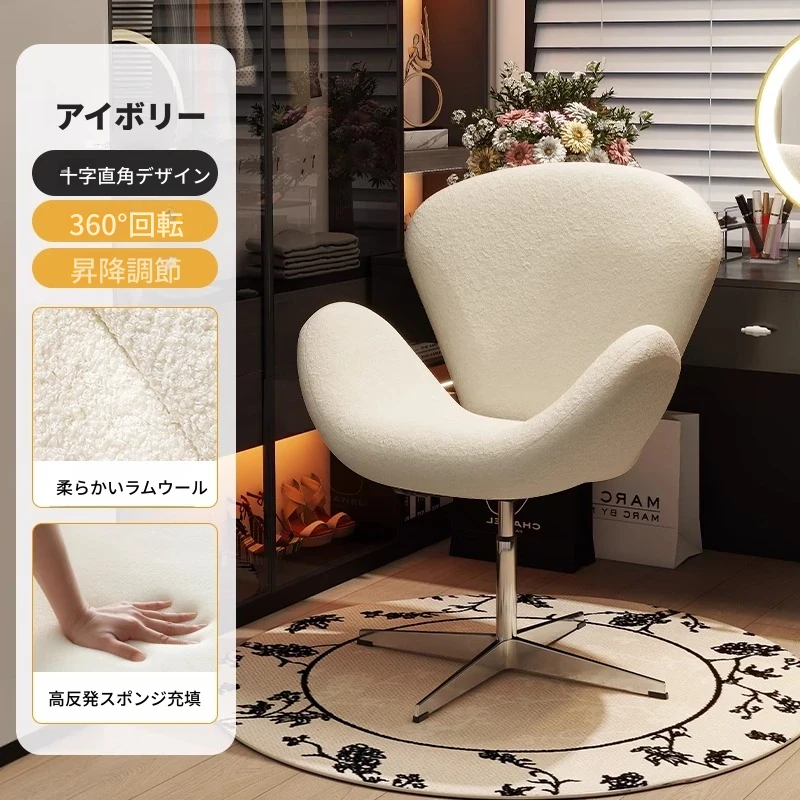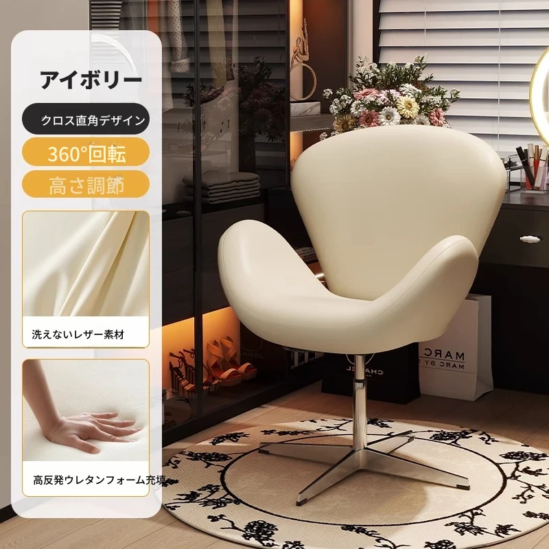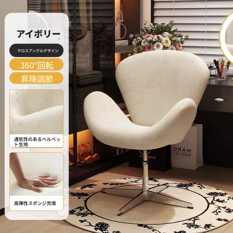 スワンチェア|リビングにぴったりの快適な一人掛けソファ|デザイナーズ・カジュアルチェア|軽やかなラグジュアリー感|女性のための寝室やメイクアップチェアに最適!