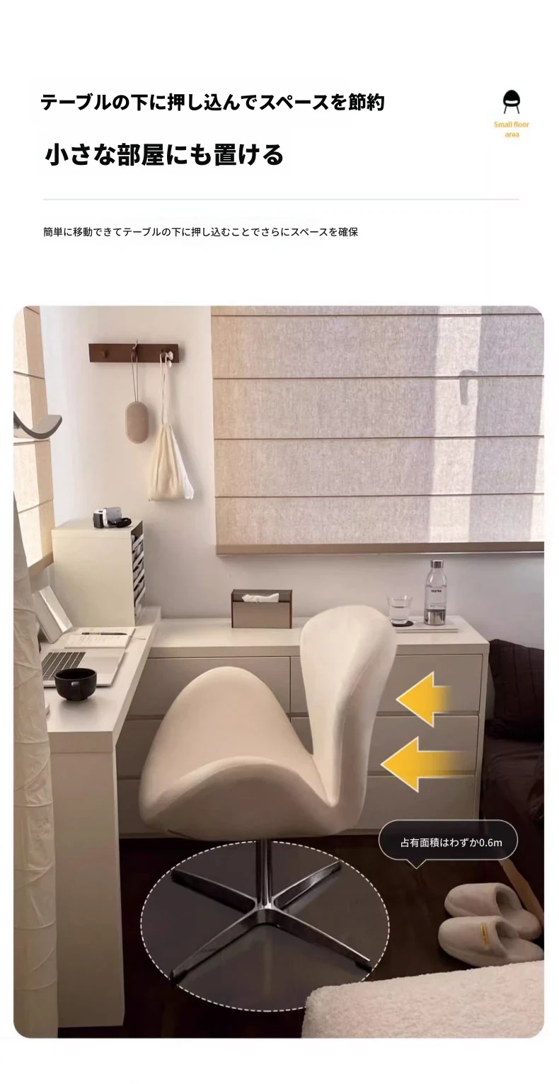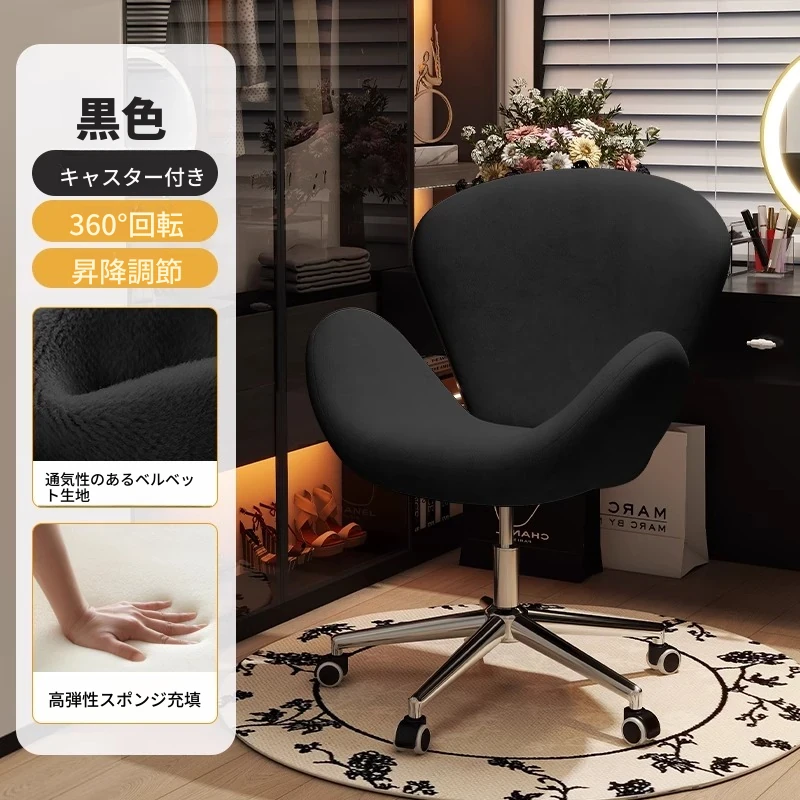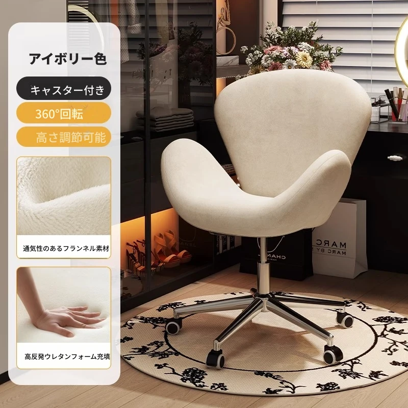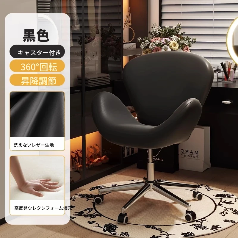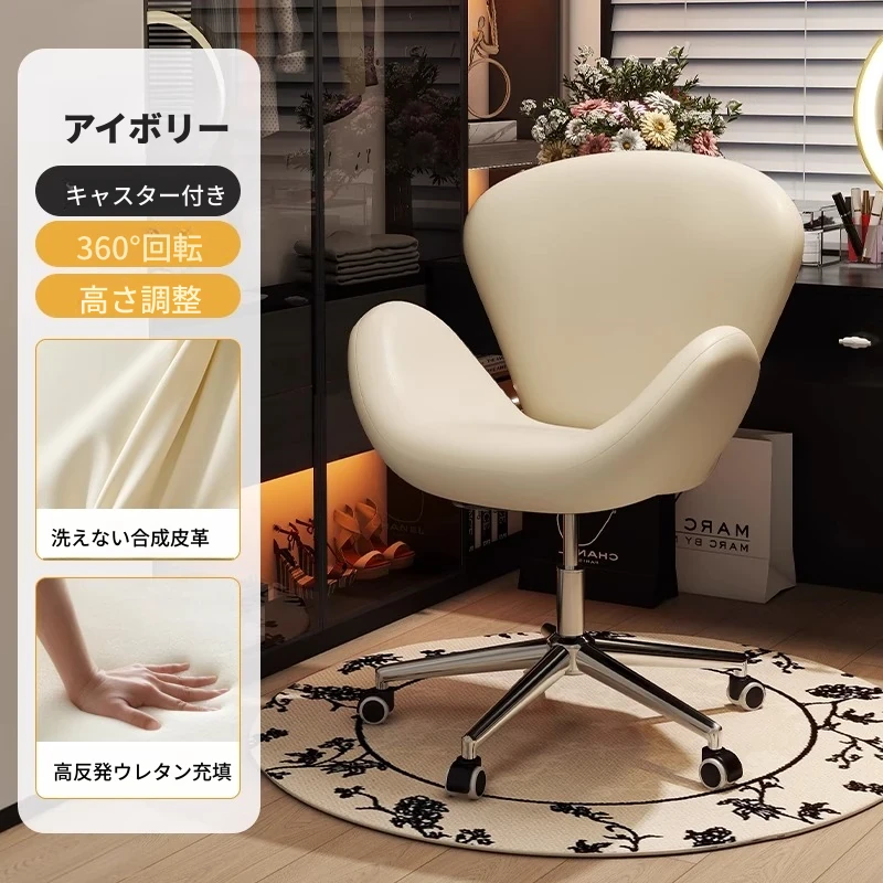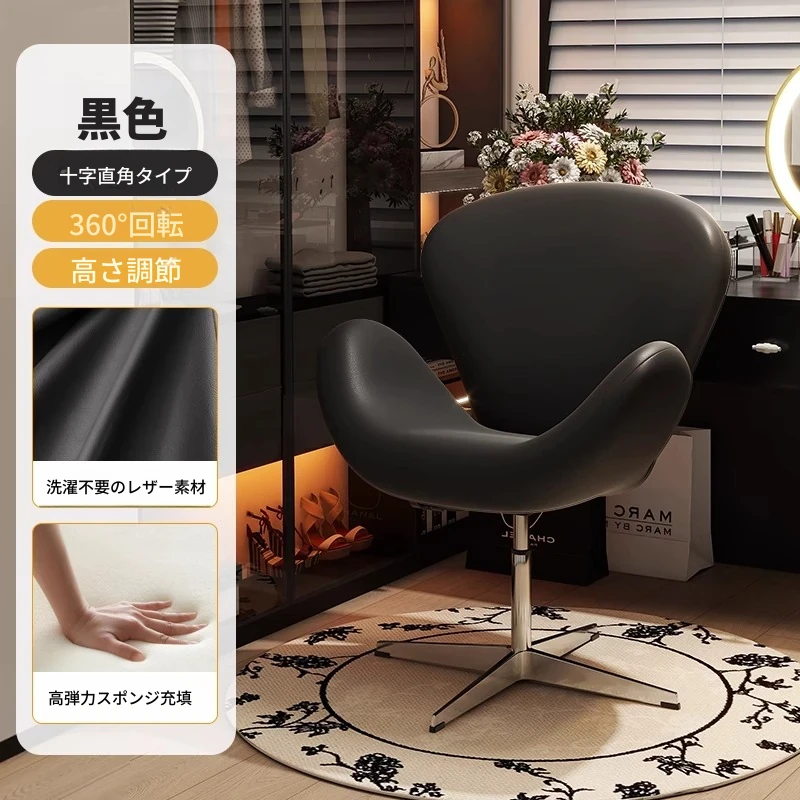スワンチェア|リビングにぴったりの快適な一人掛けソファ|デザイナーズ・カジュアルチェア|軽やかなラグジュアリー感|女性のための寝室やメイクアップチェアに最適!