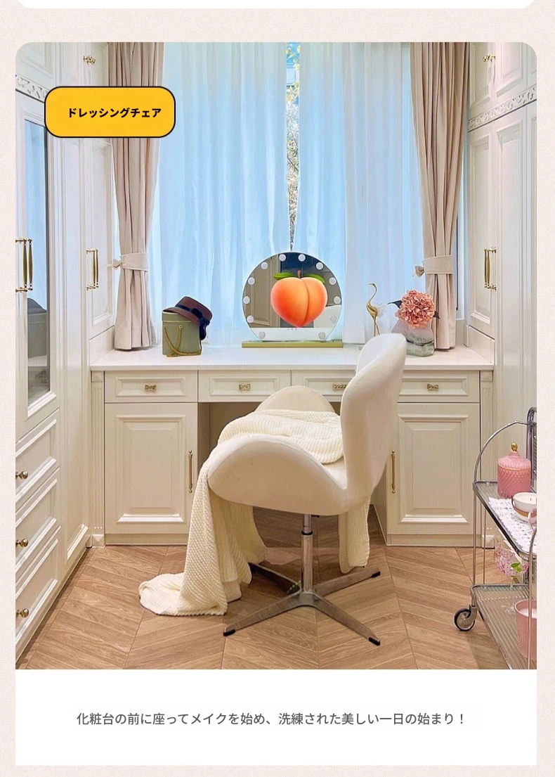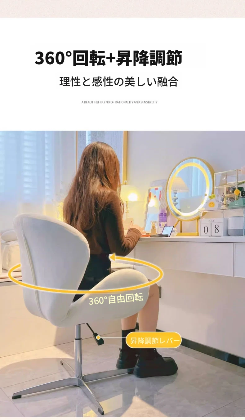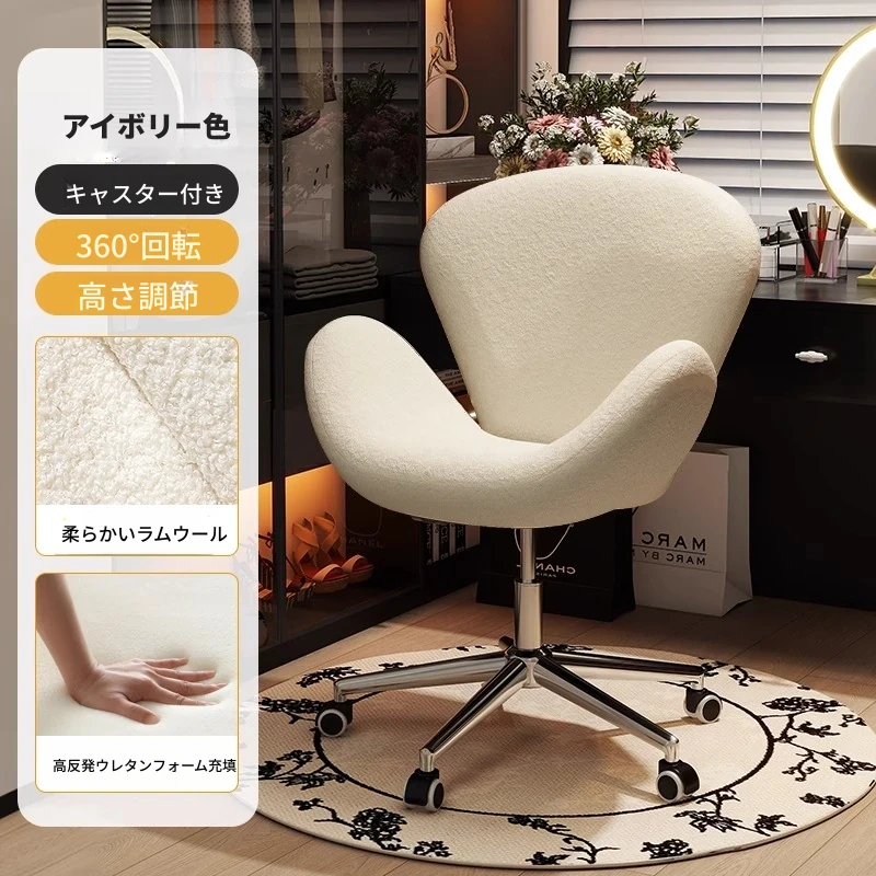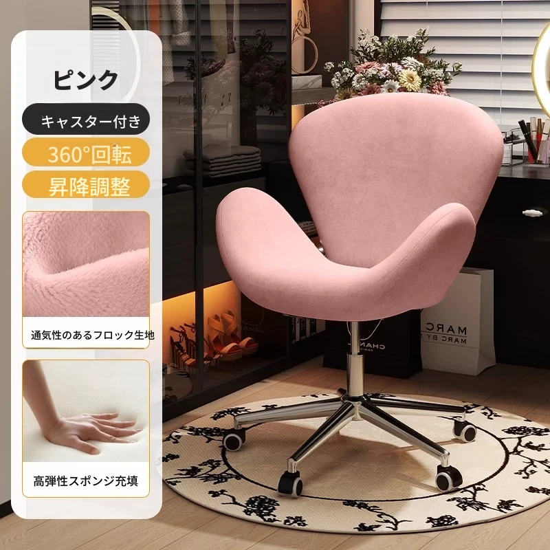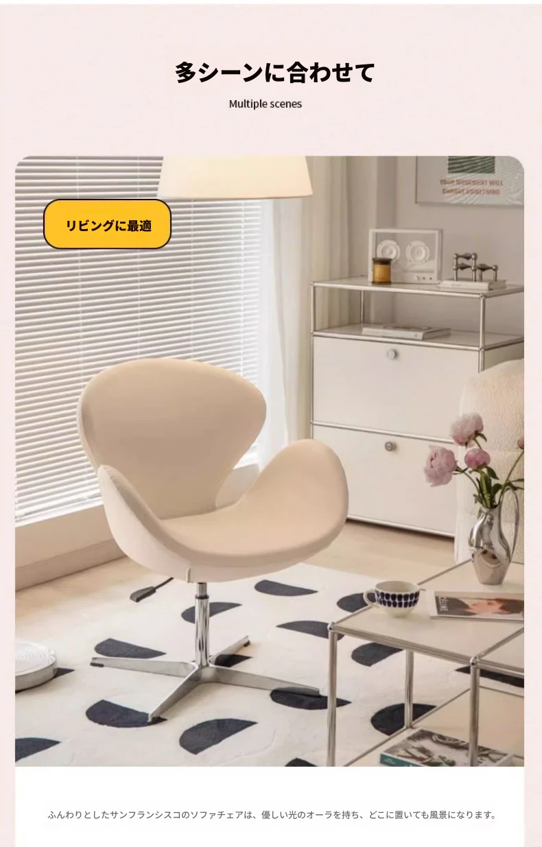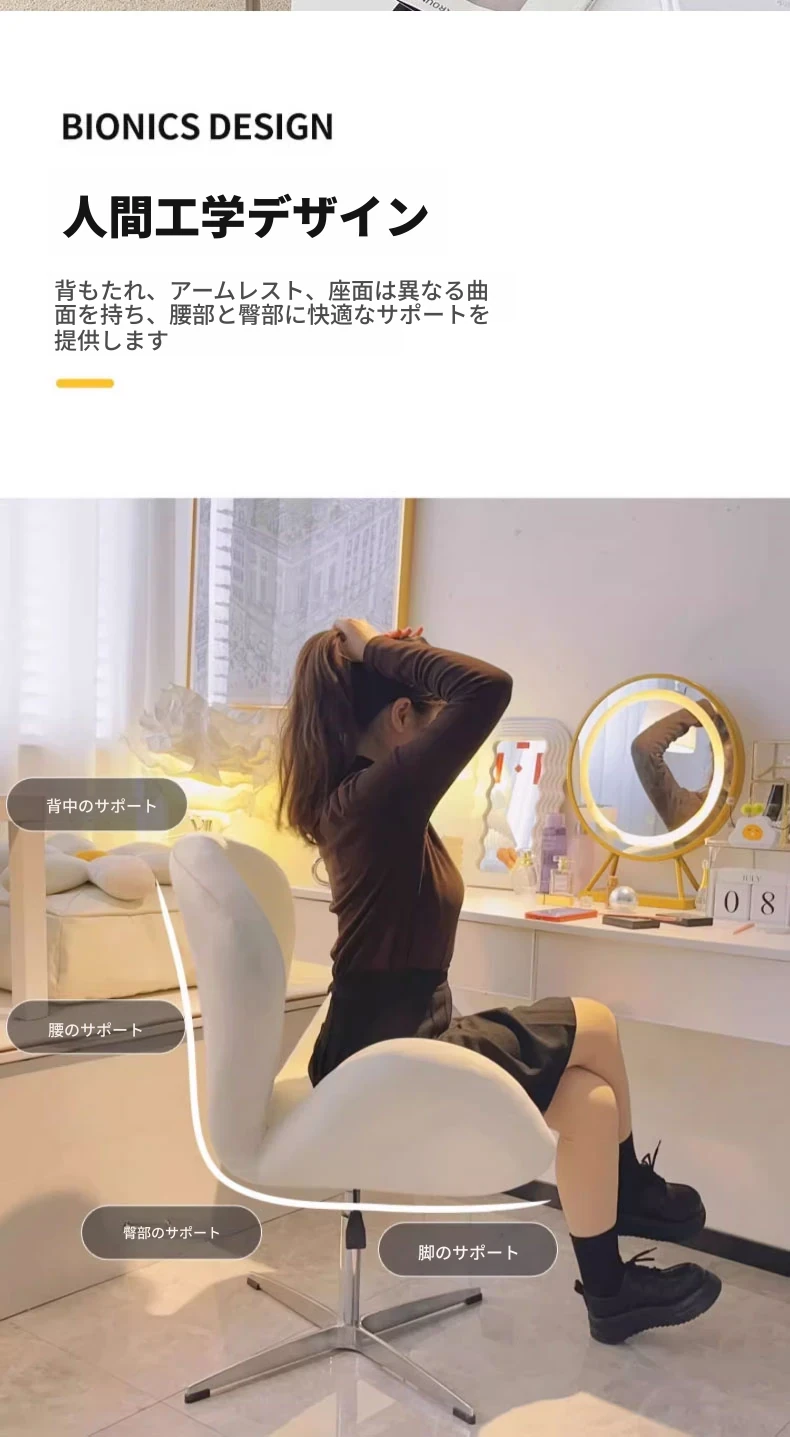 スワンチェア|リビングにぴったりの快適な一人掛けソファ|デザイナーズ・カジュアルチェア|軽やかなラグジュアリー感|女性のための寝室やメイクアップチェアに最適!