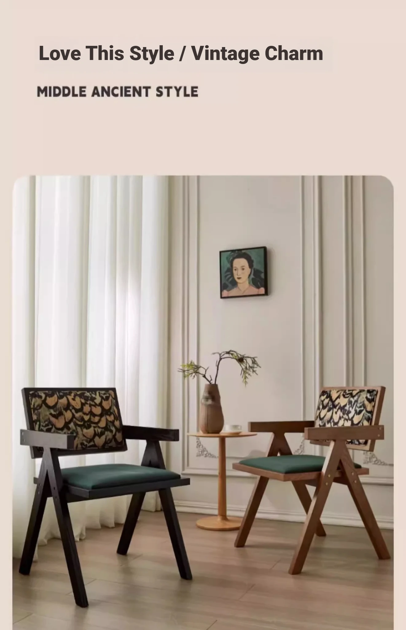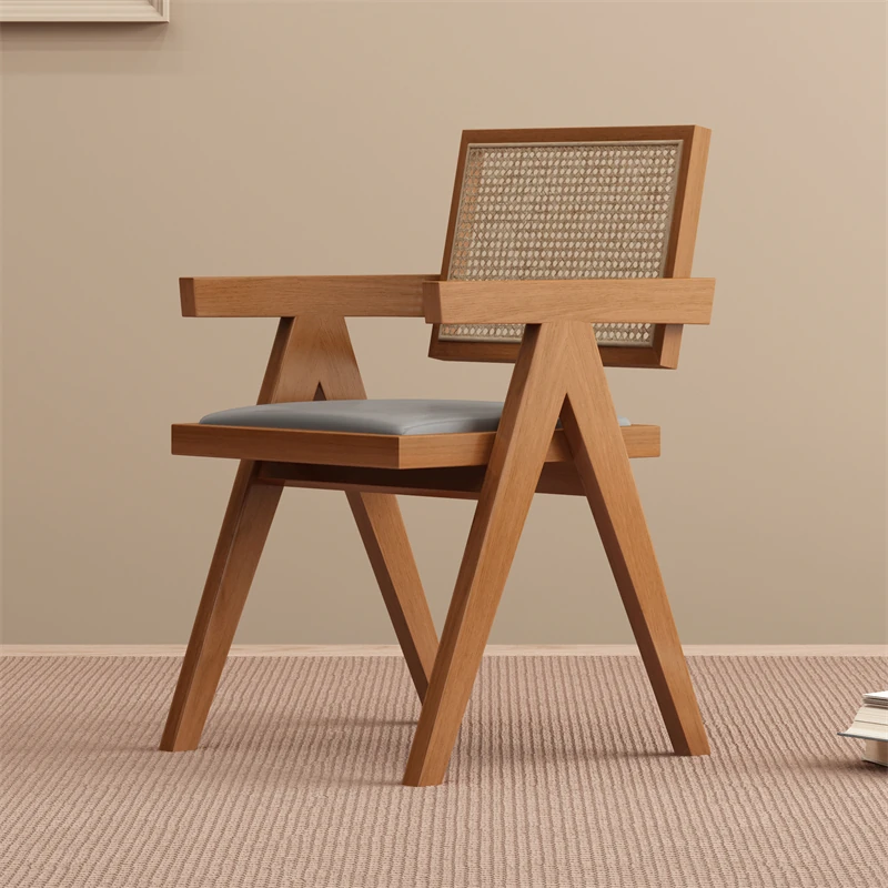 [Chandigarh Chair] Log Color-Upgrade Widened thickened Rattan Seat-FAS Grade Import Rubber Wood