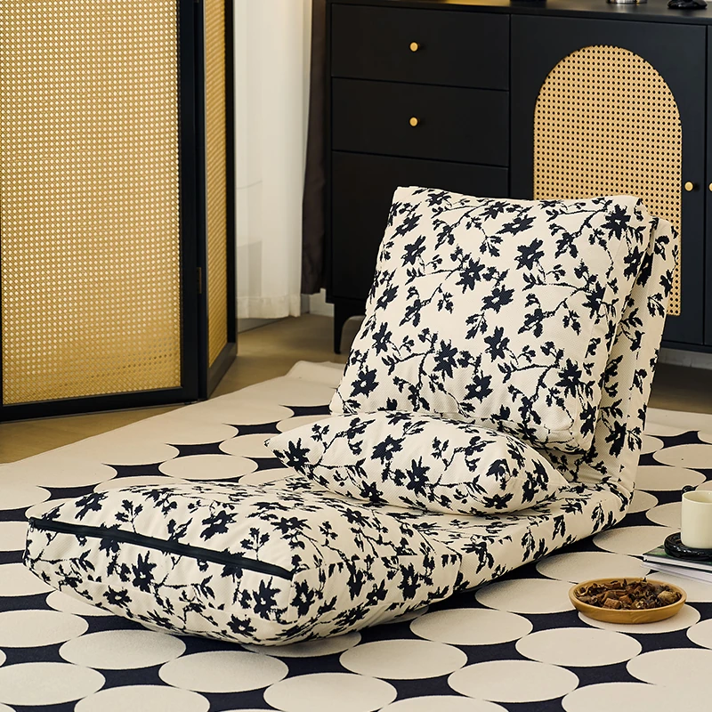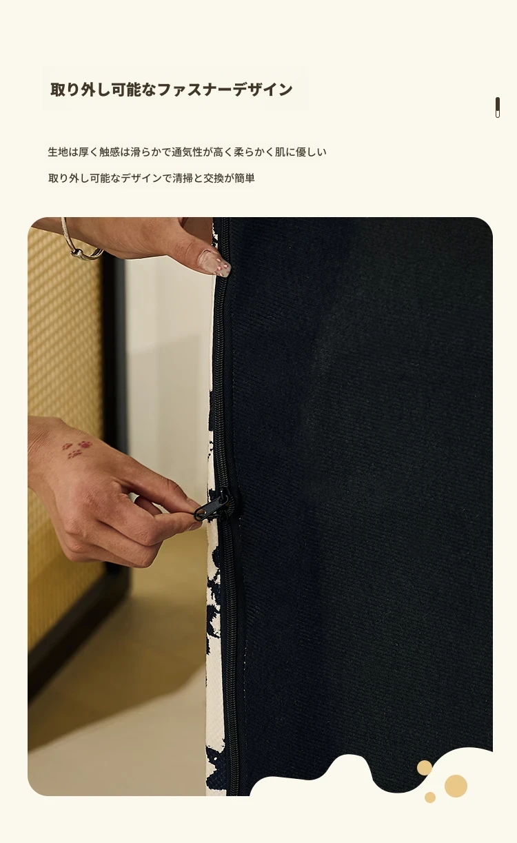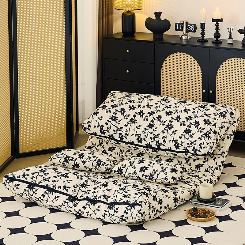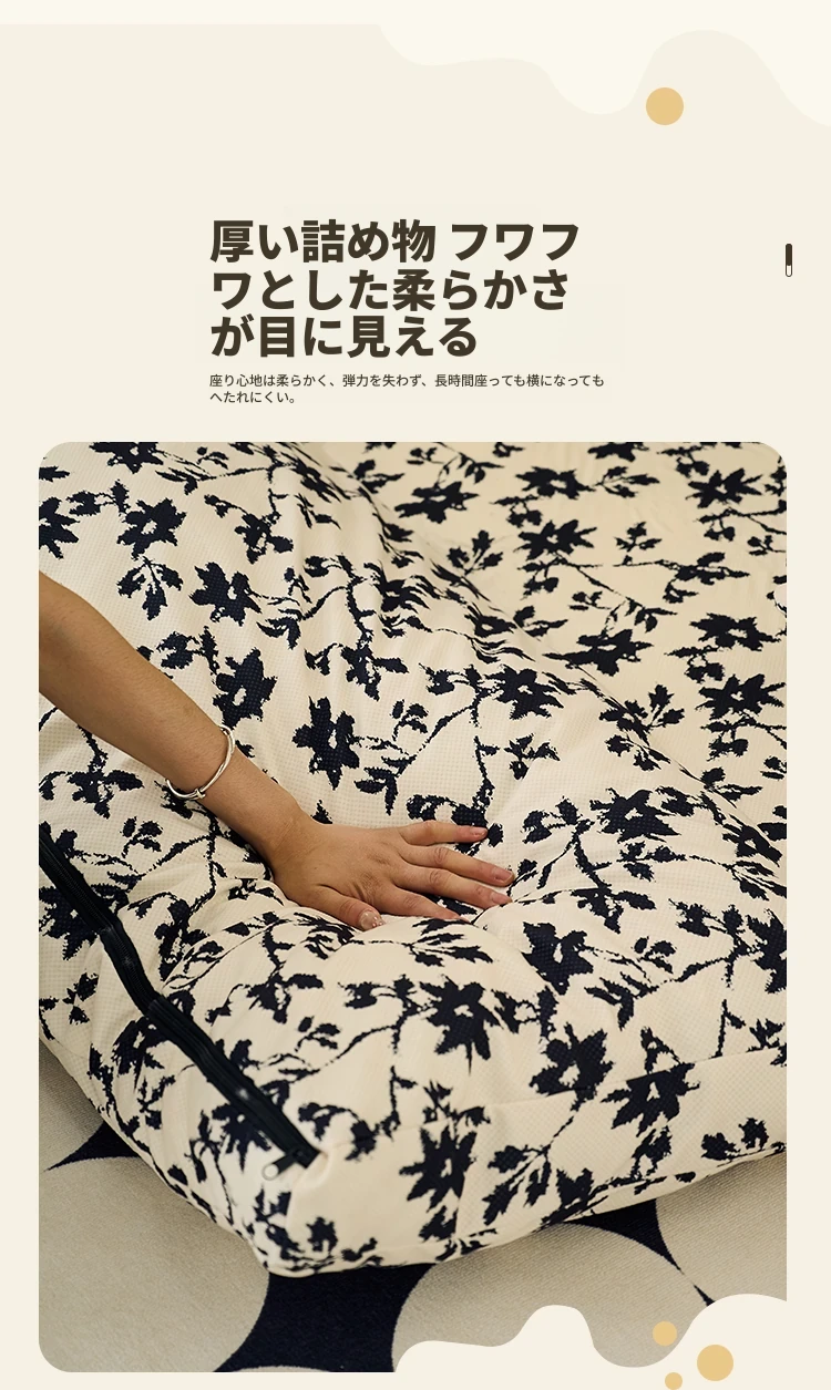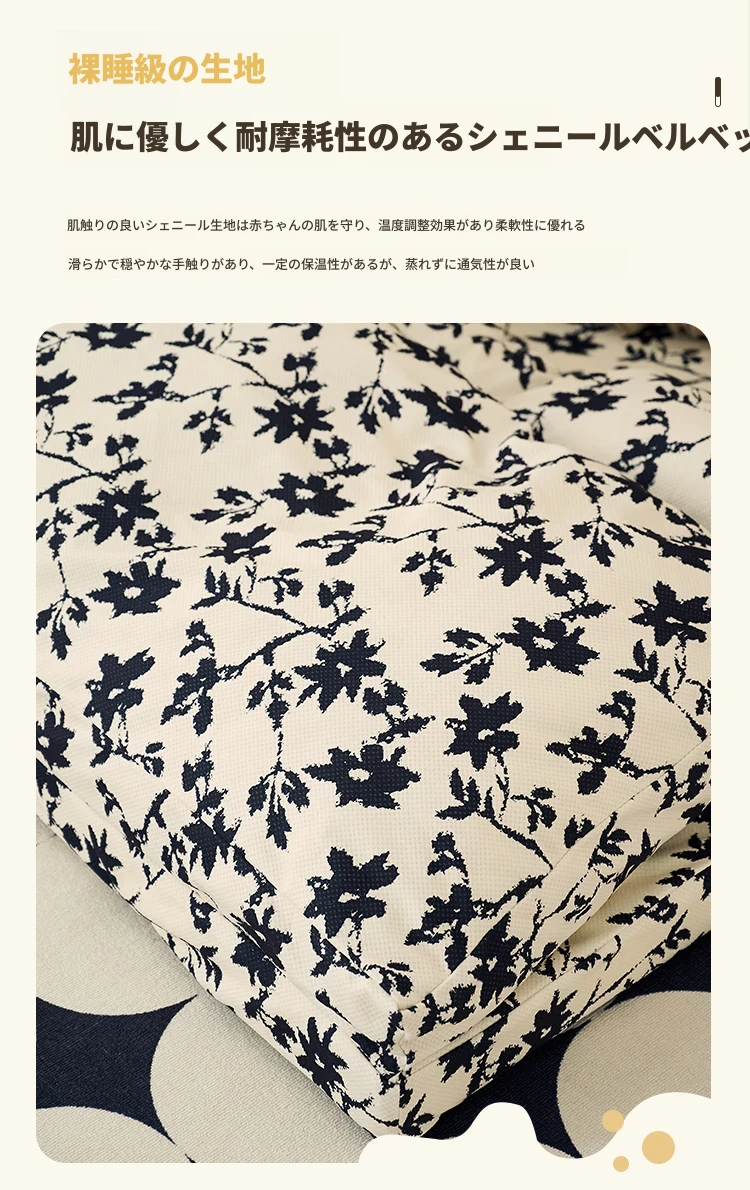 【ダブルサイズ120cm】墨花柄+クッション【シェニールベルベット&多段階調整】