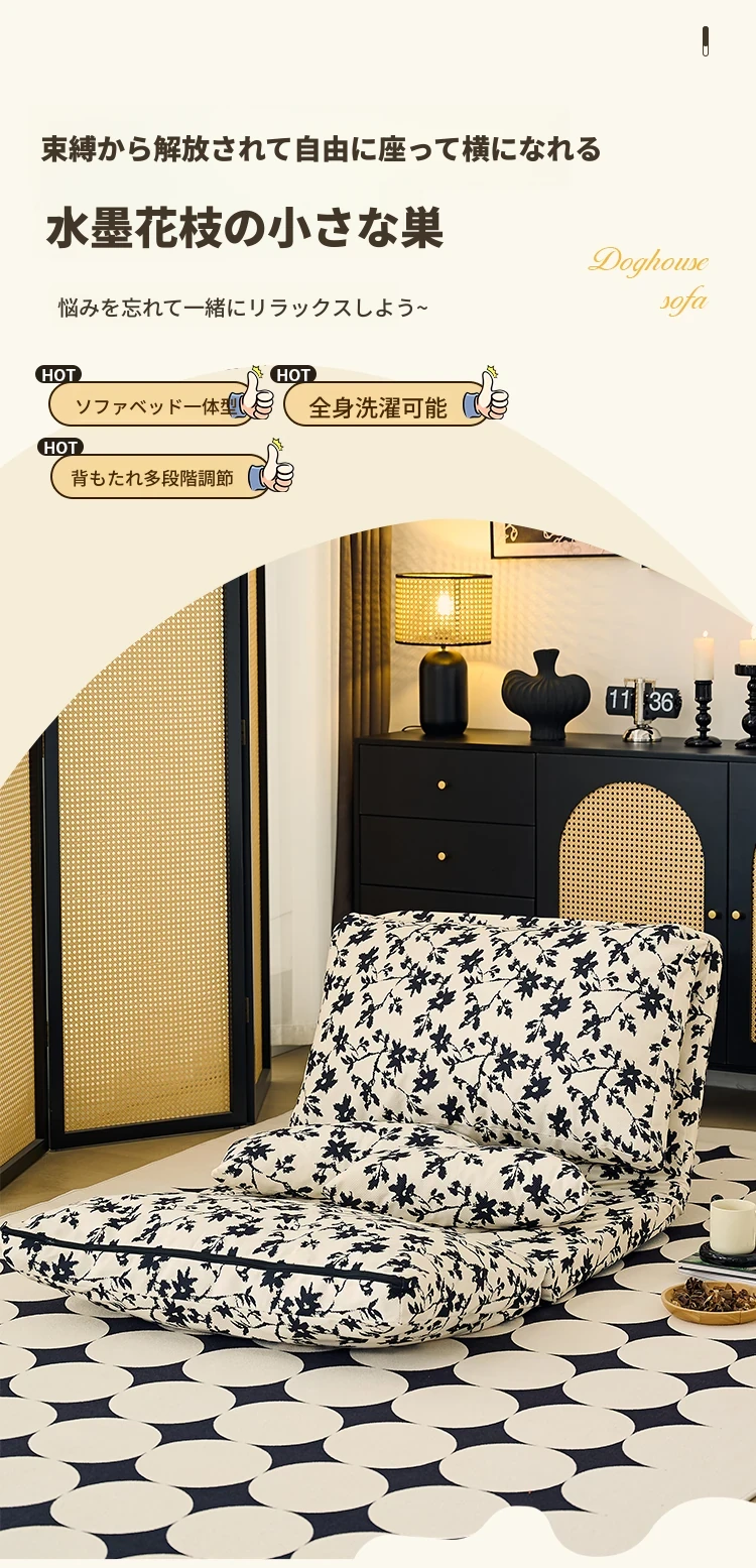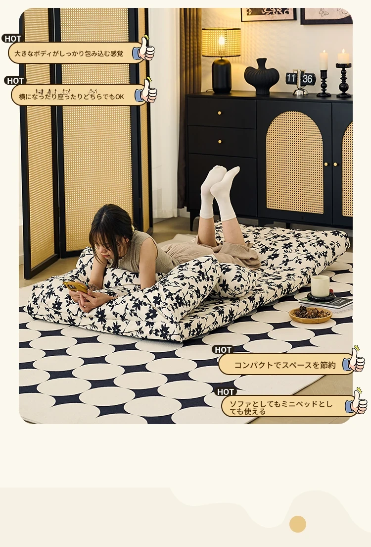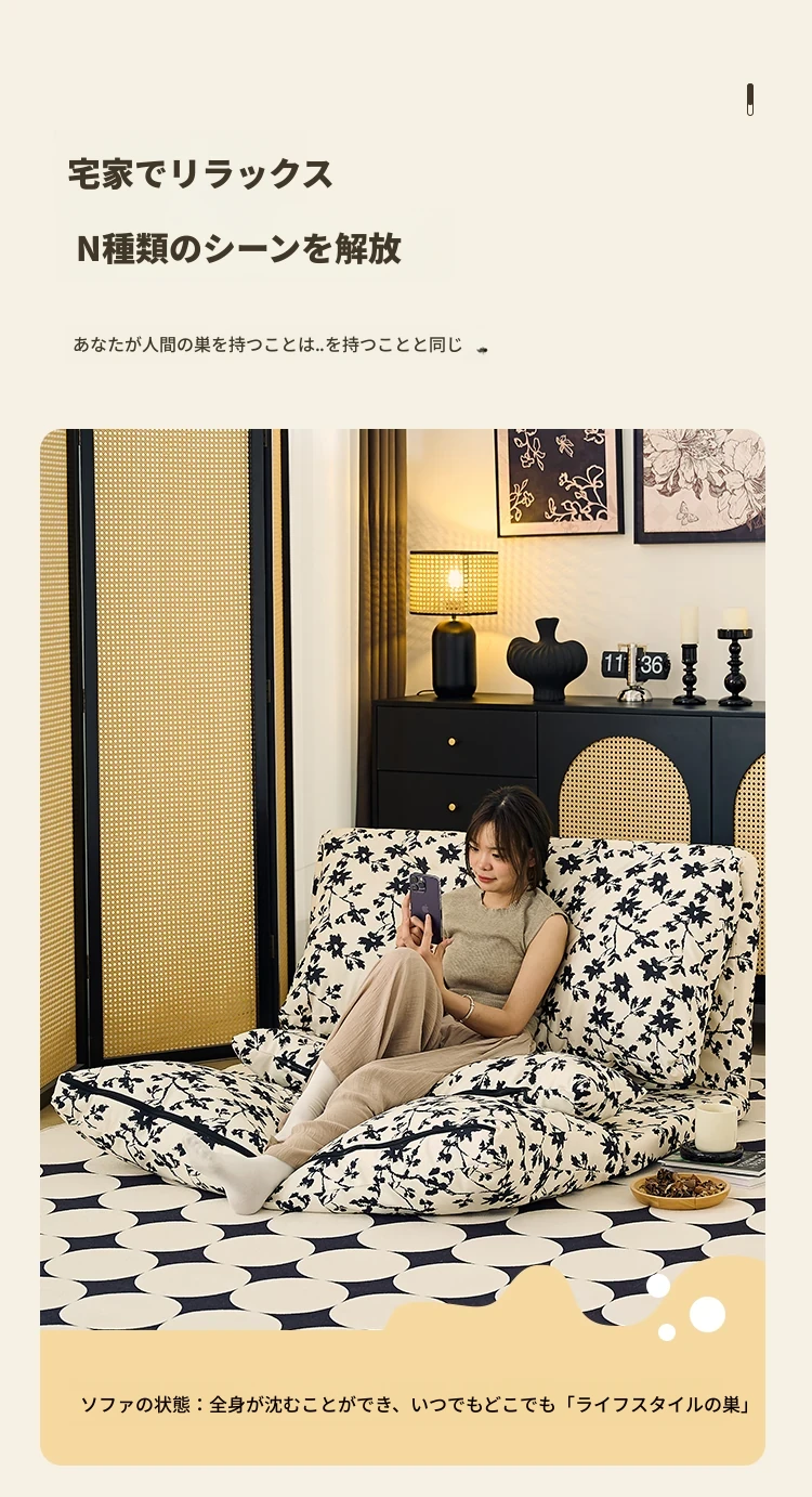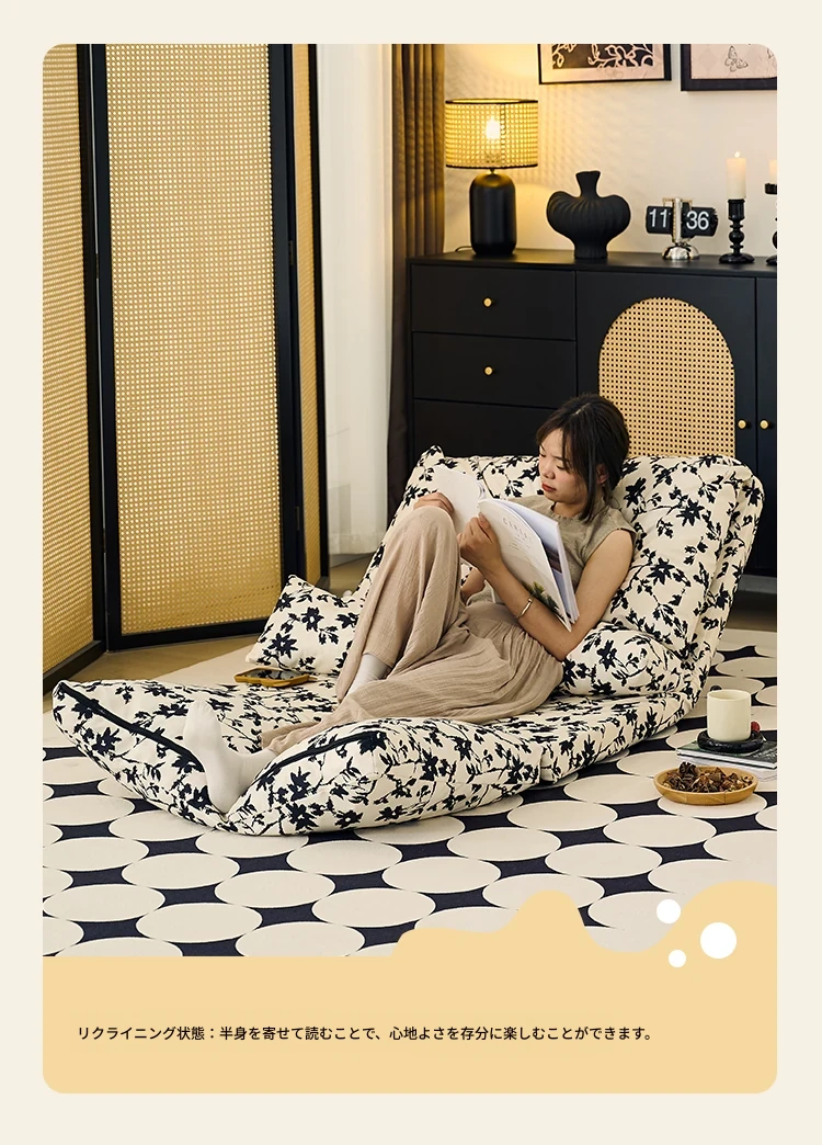 2024年新作!リラックスソファ - 寝るも座るも自由自在!畳&バルコニーにもぴったりな折りたたみ可能なモダンソファベッド。主寝室やリビングに最適なコンパクトデザイン!