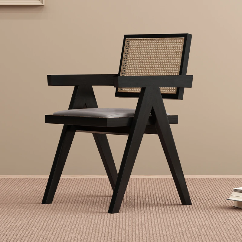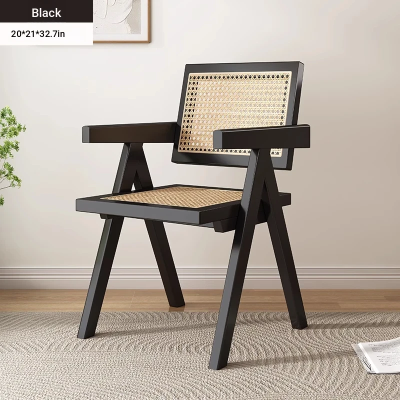 [Three-year warranty] black wood color/double rattan thickened seat surface⭐FAS grade Import solid wood