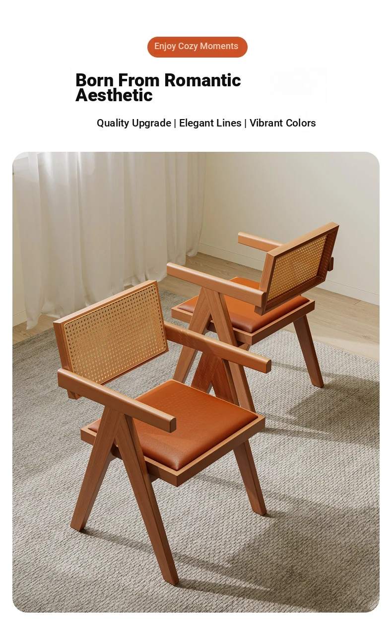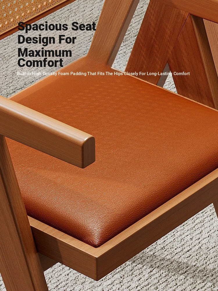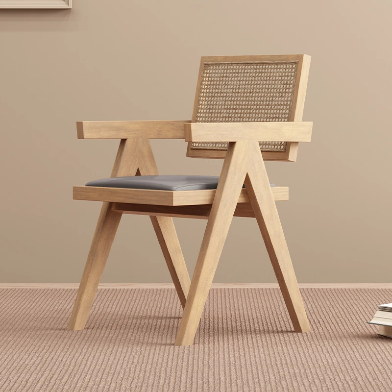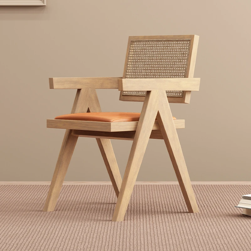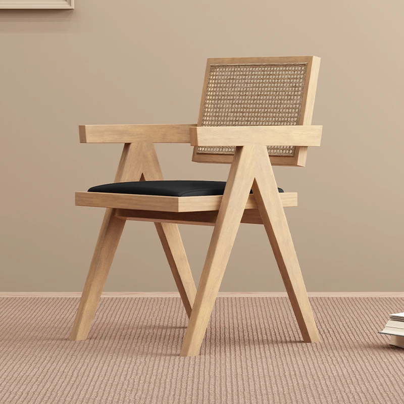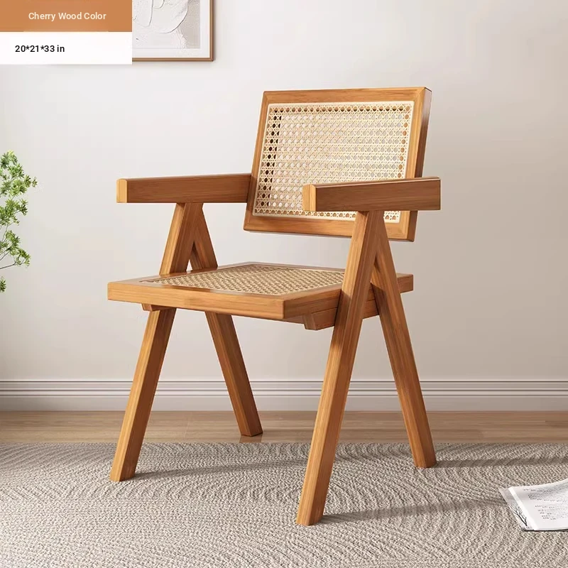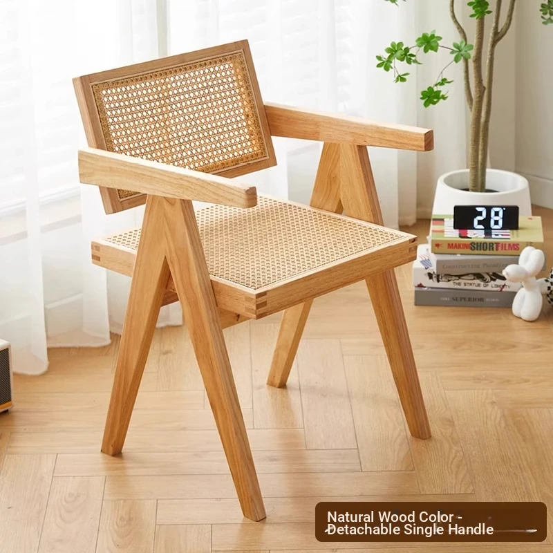 Vintage Scandinavian Rattan Dining Chair - Solid Wood, Soft Cushion, Perfect for Living Room & Home Use - Chic Chandigarh Style with Backrest for Dining Table