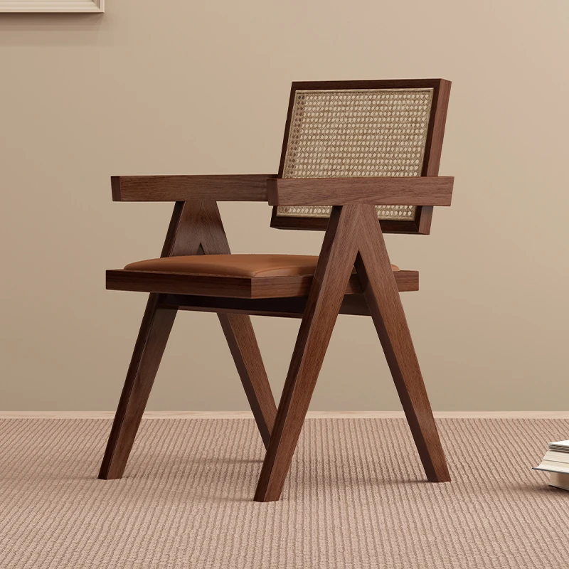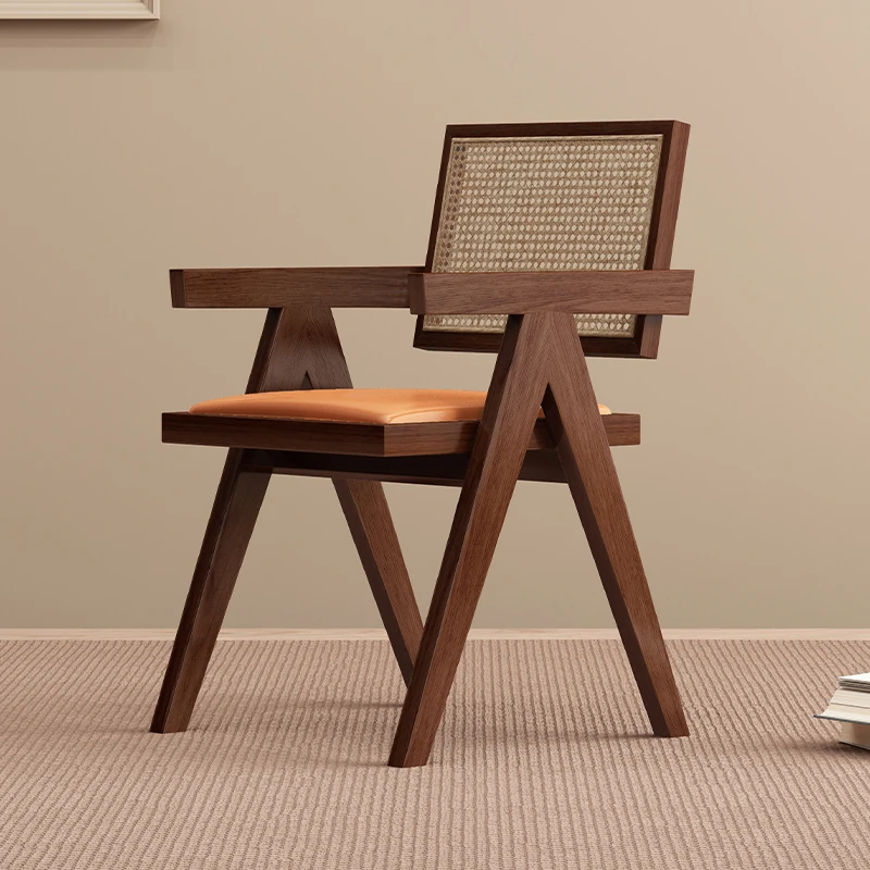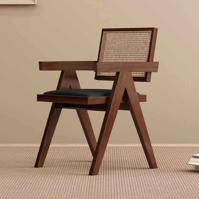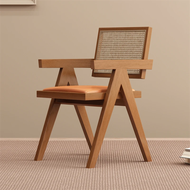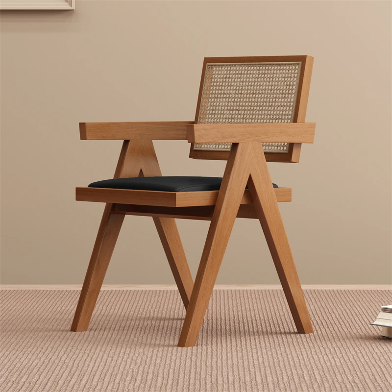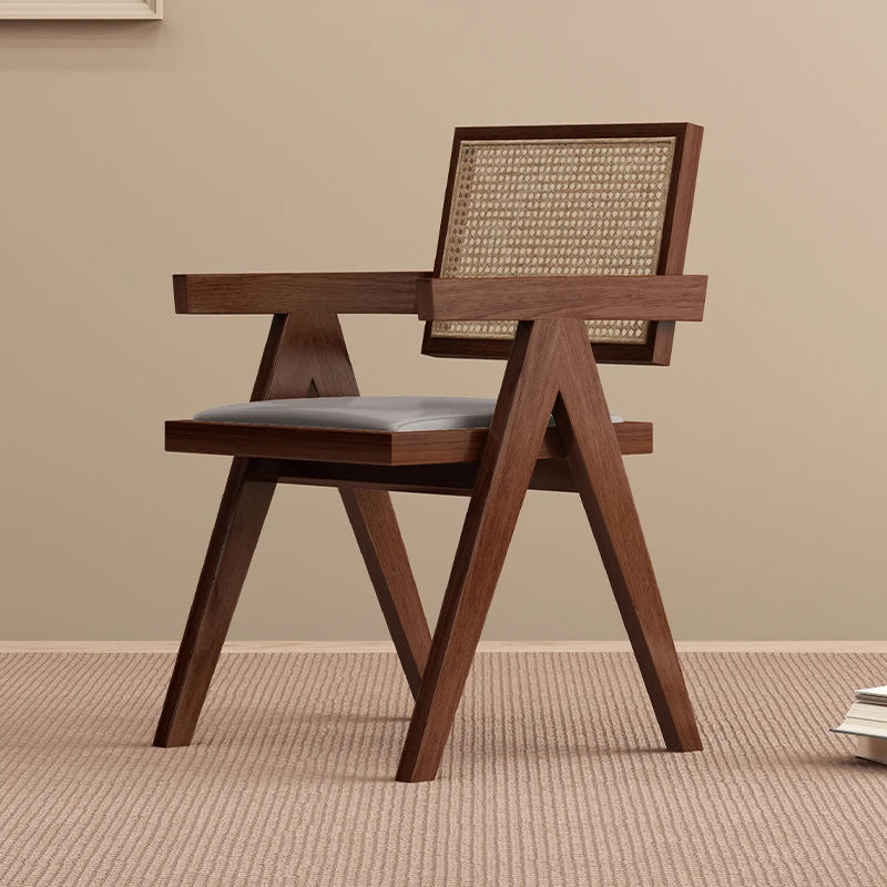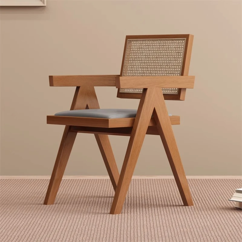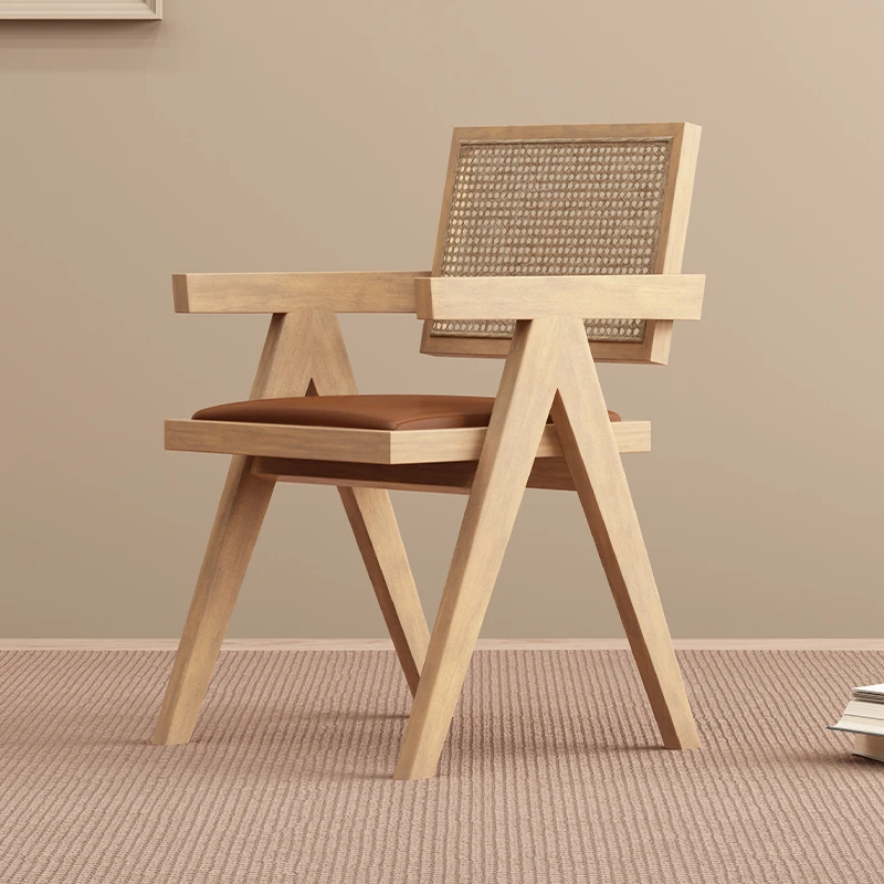 Vintage Scandinavian Rattan Dining Chair - Solid Wood, Soft Cushion, Perfect for Living Room & Home Use - Chic Chandigarh Style with Backrest for Dining Table