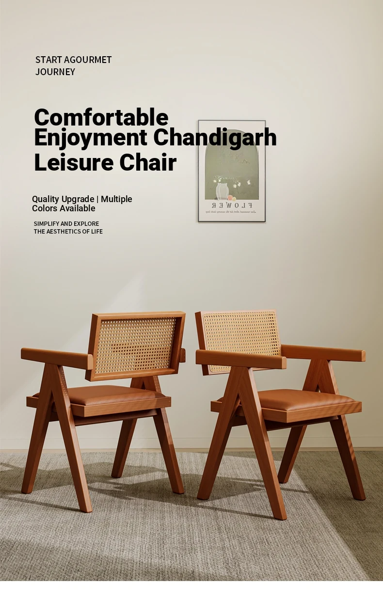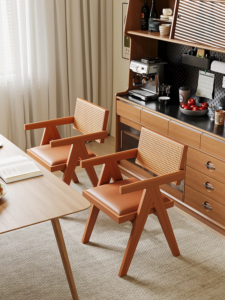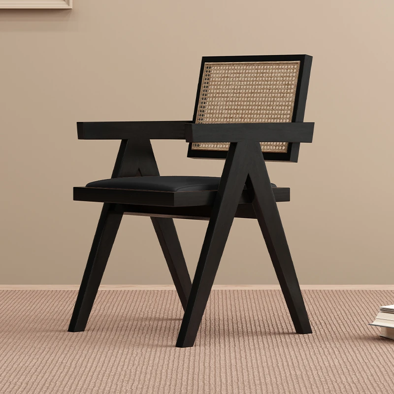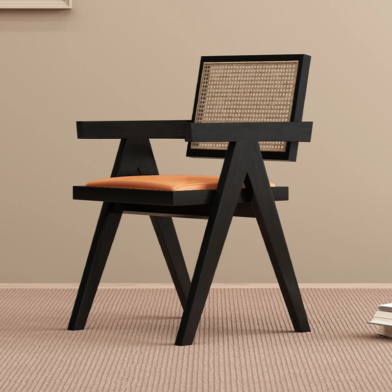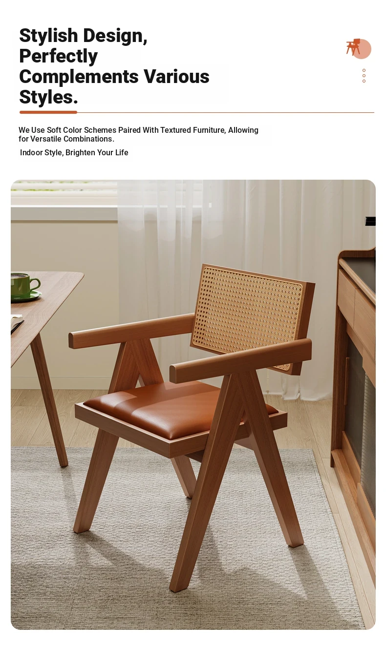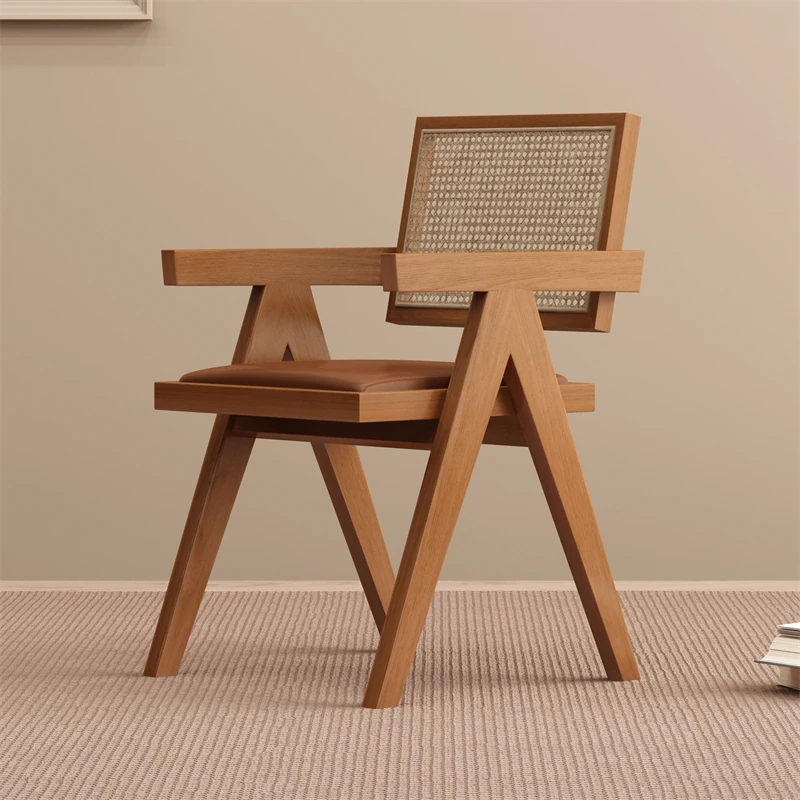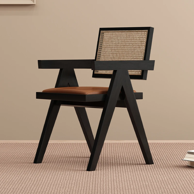 Vintage Scandinavian Rattan Dining Chair - Solid Wood, Soft Cushion, Perfect for Living Room & Home Use - Chic Chandigarh Style with Backrest for Dining Table