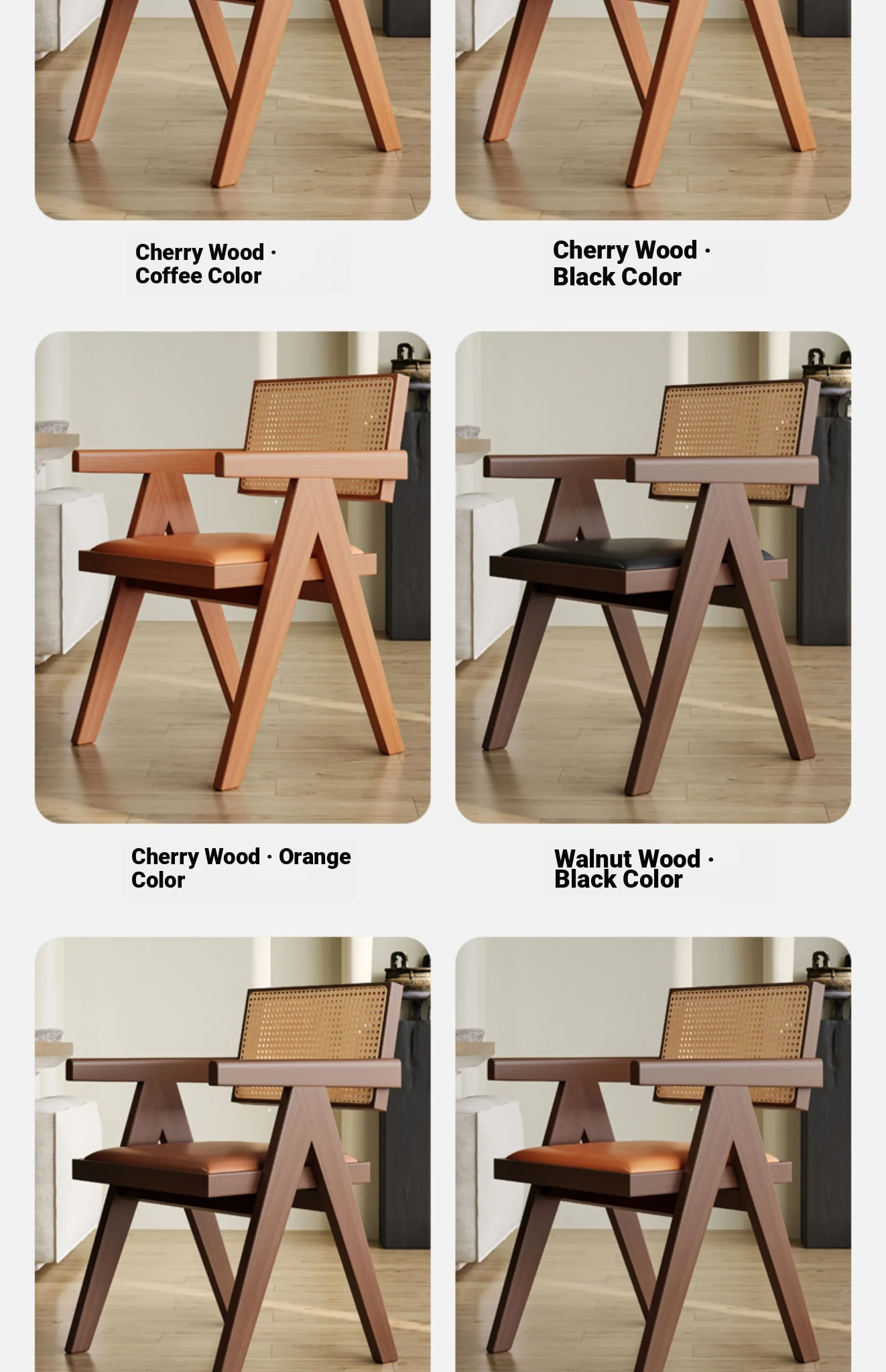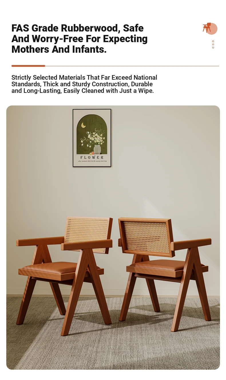 [Three-year warranty] cherry wood color/double rattan thickened seat surface⭐FAS grade Import solid wood
